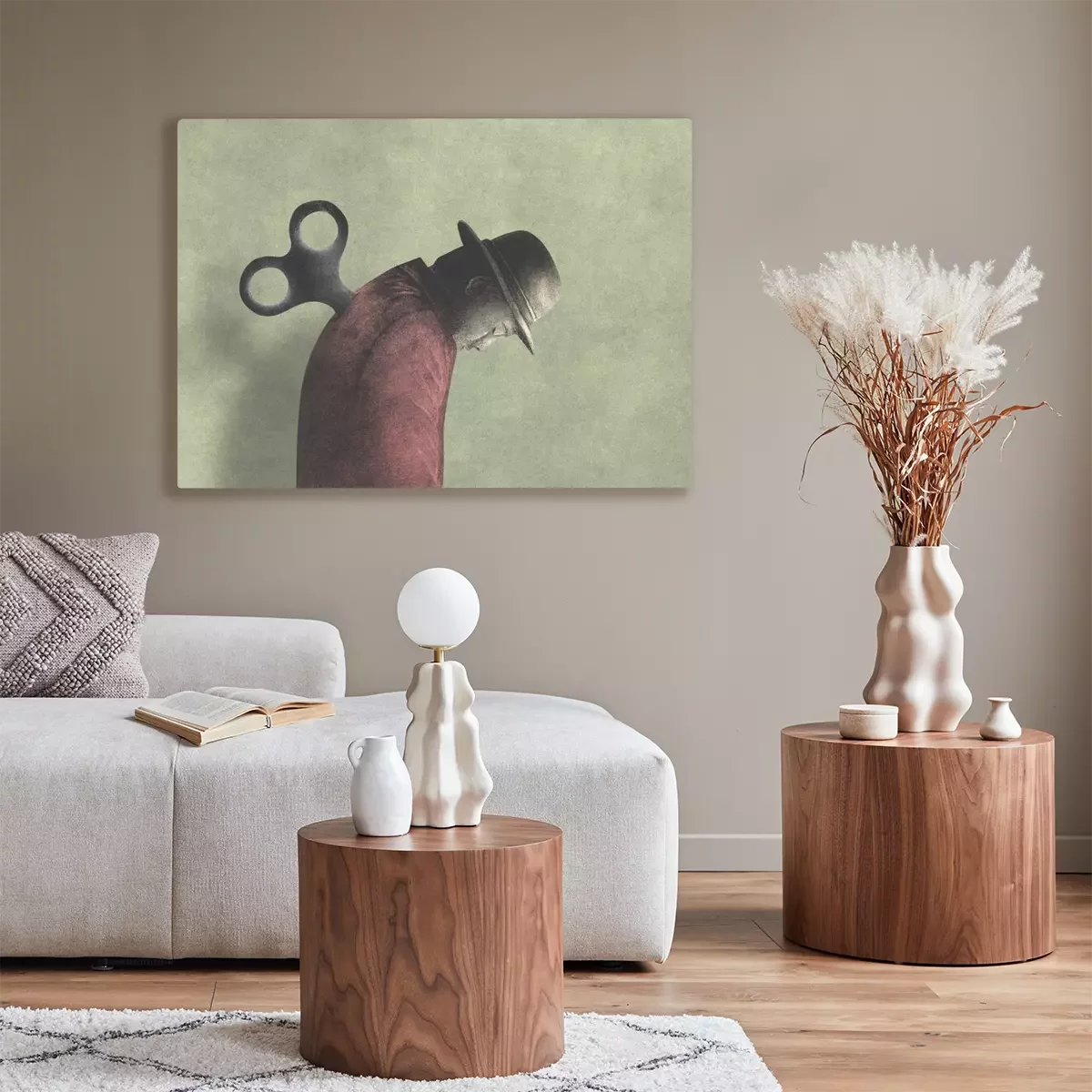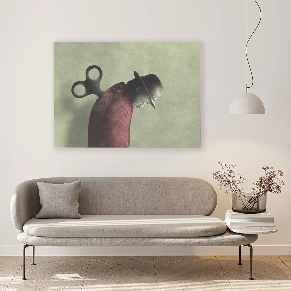 Canvas Illustration Of Tired Man With A Wind Up Key