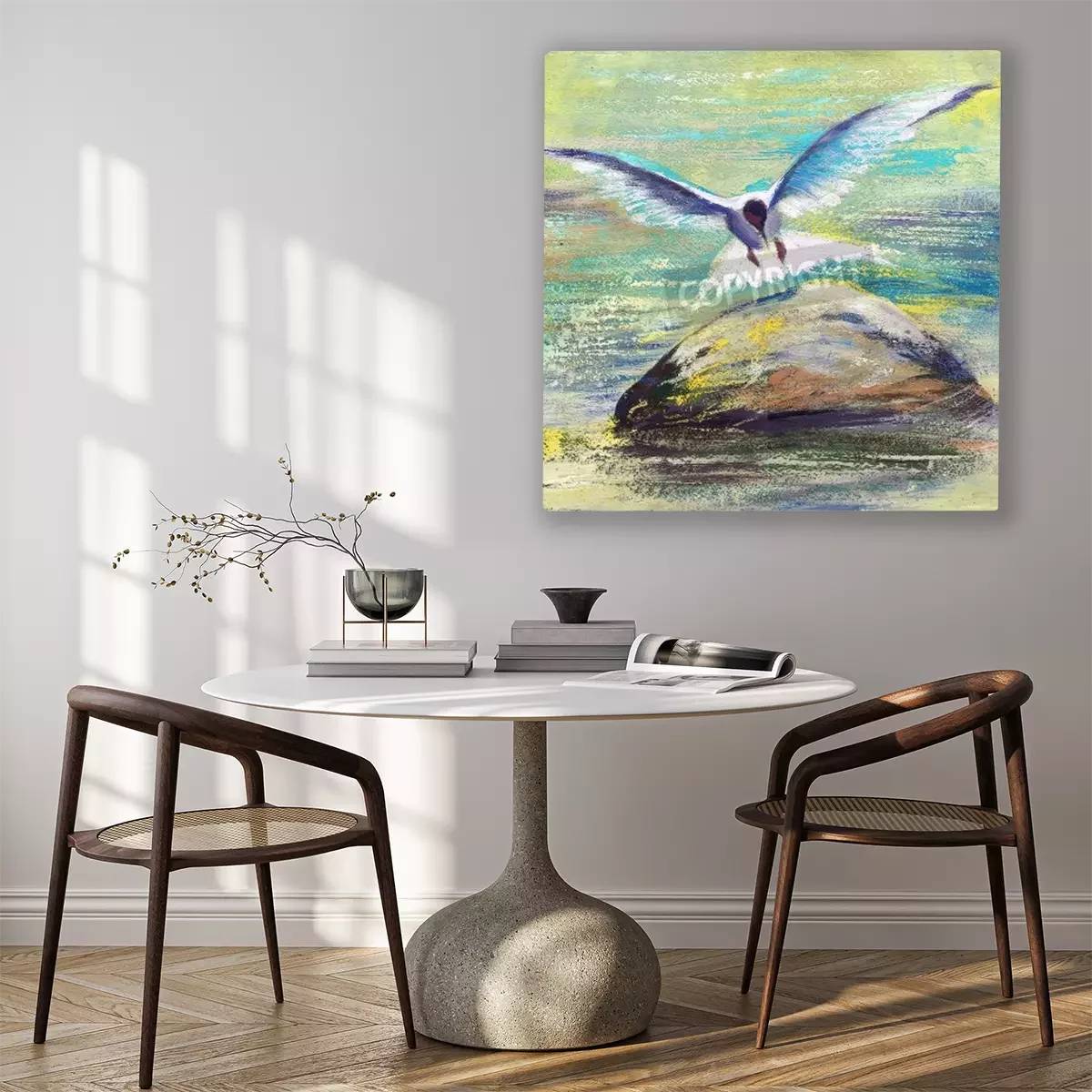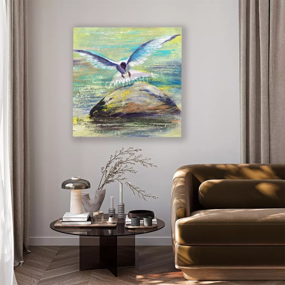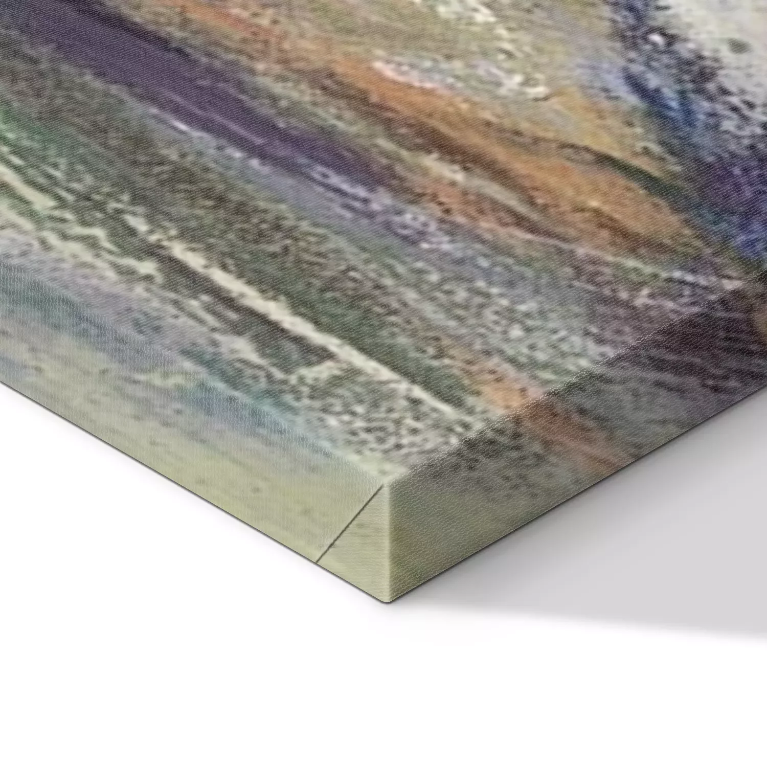 De print wordt aangebracht op hoogwaardig canvas dat op een schildersweefgetouw (spieraam) wordt gespannen. Omdat de print de zijranden bedekt, hoeft het ontwerp niet met een extra kader te worden omlijst. Wij raden ook composities aan die uit meerdere foto's bestaan en zo een coherente compositie vormen.