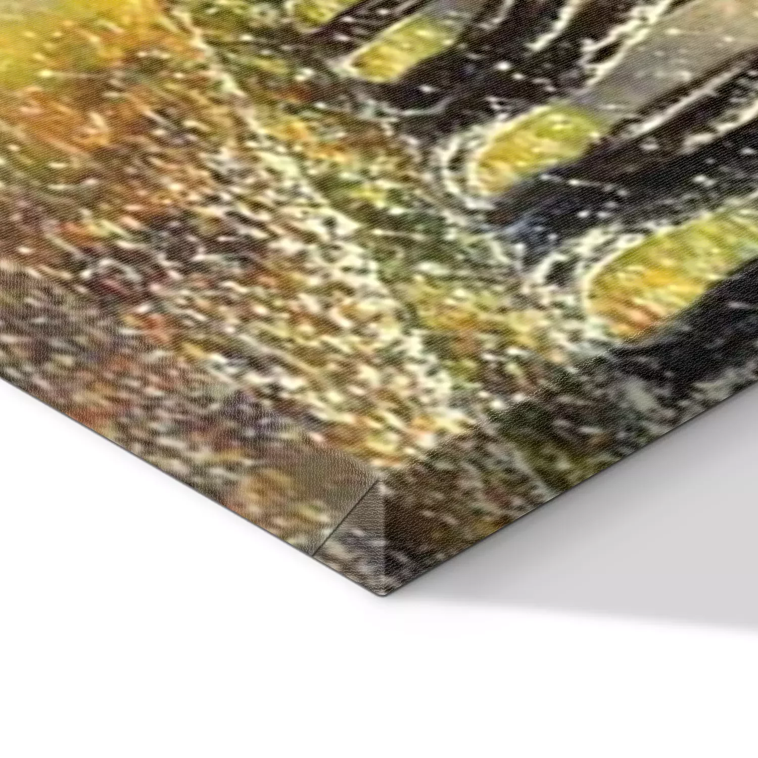 De print wordt aangebracht op hoogwaardig canvas dat op een schildersweefgetouw (spieraam) wordt gespannen. Omdat de print de zijranden bedekt, hoeft het ontwerp niet met een extra kader te worden omlijst. Wij raden ook composities aan die uit meerdere foto's bestaan en zo een coherente compositie vormen.