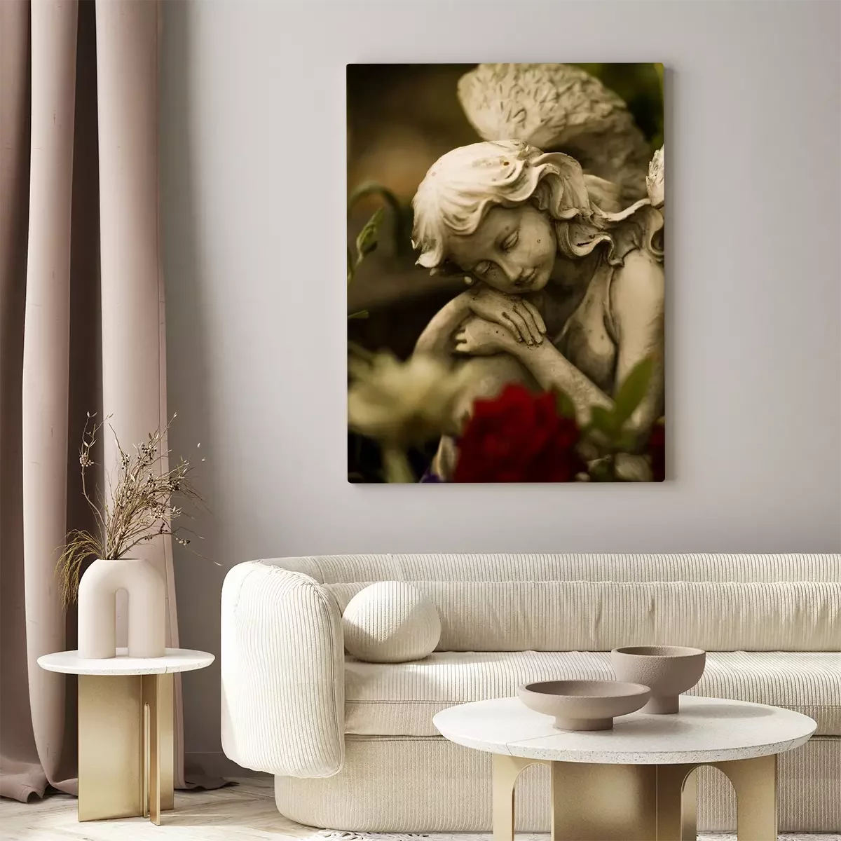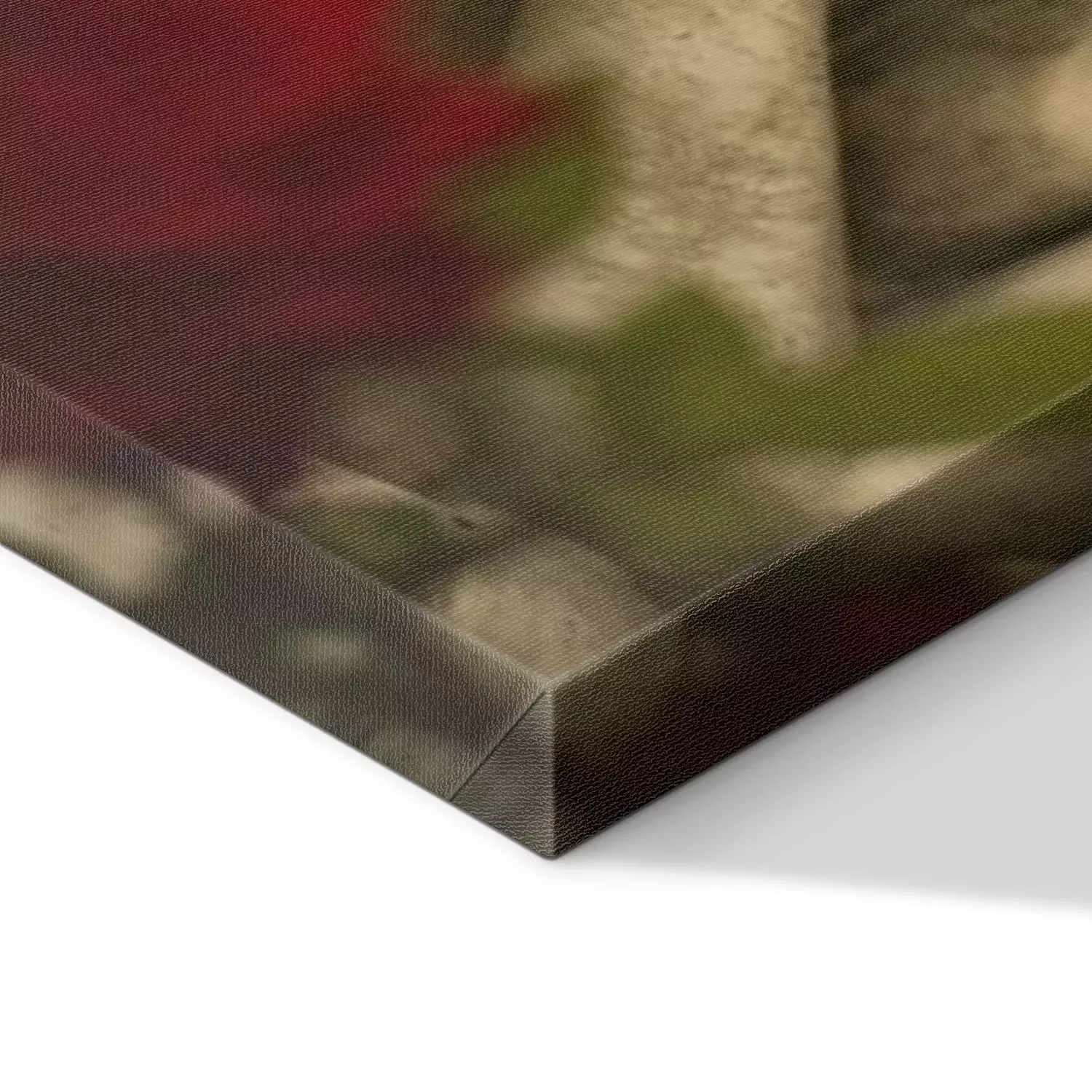 De print wordt aangebracht op hoogwaardig canvas dat op een schildersweefgetouw (spieraam) wordt gespannen. Omdat de print de zijranden bedekt, hoeft het ontwerp niet met een extra kader te worden omlijst. Wij raden ook composities aan die uit meerdere foto's bestaan en zo een coherente compositie vormen.