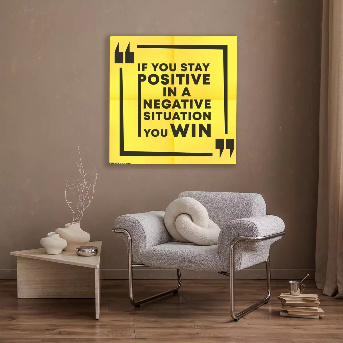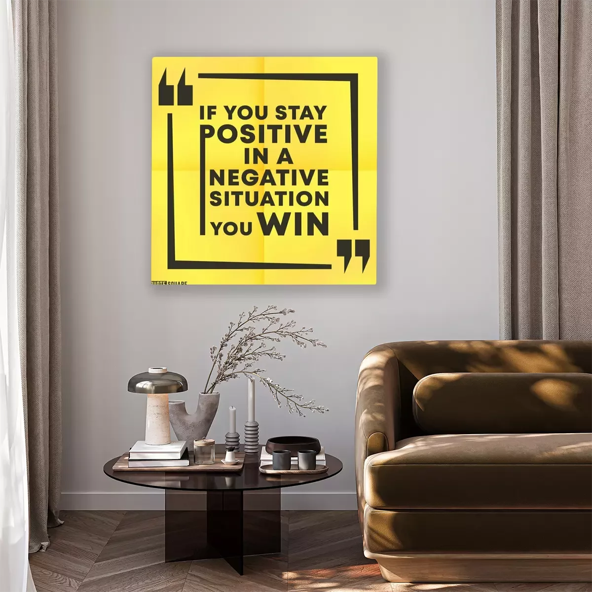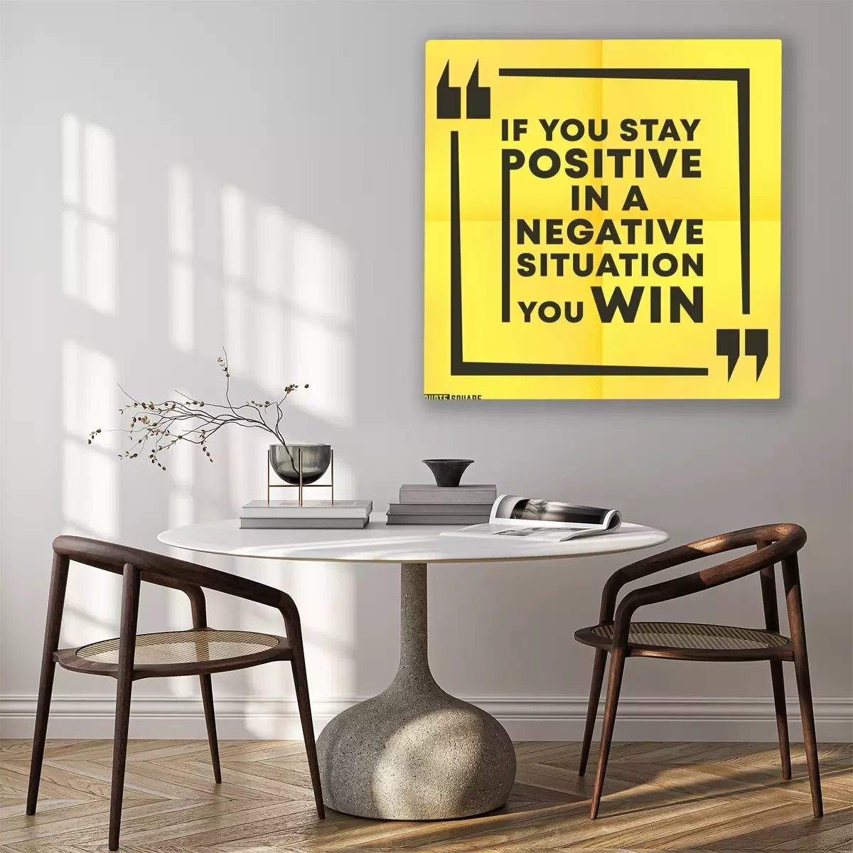 Canvas: Inspirational quotes box with a slogan - If you stay positive in a negative situation, you win. Quote motivational square template. Vector illustration