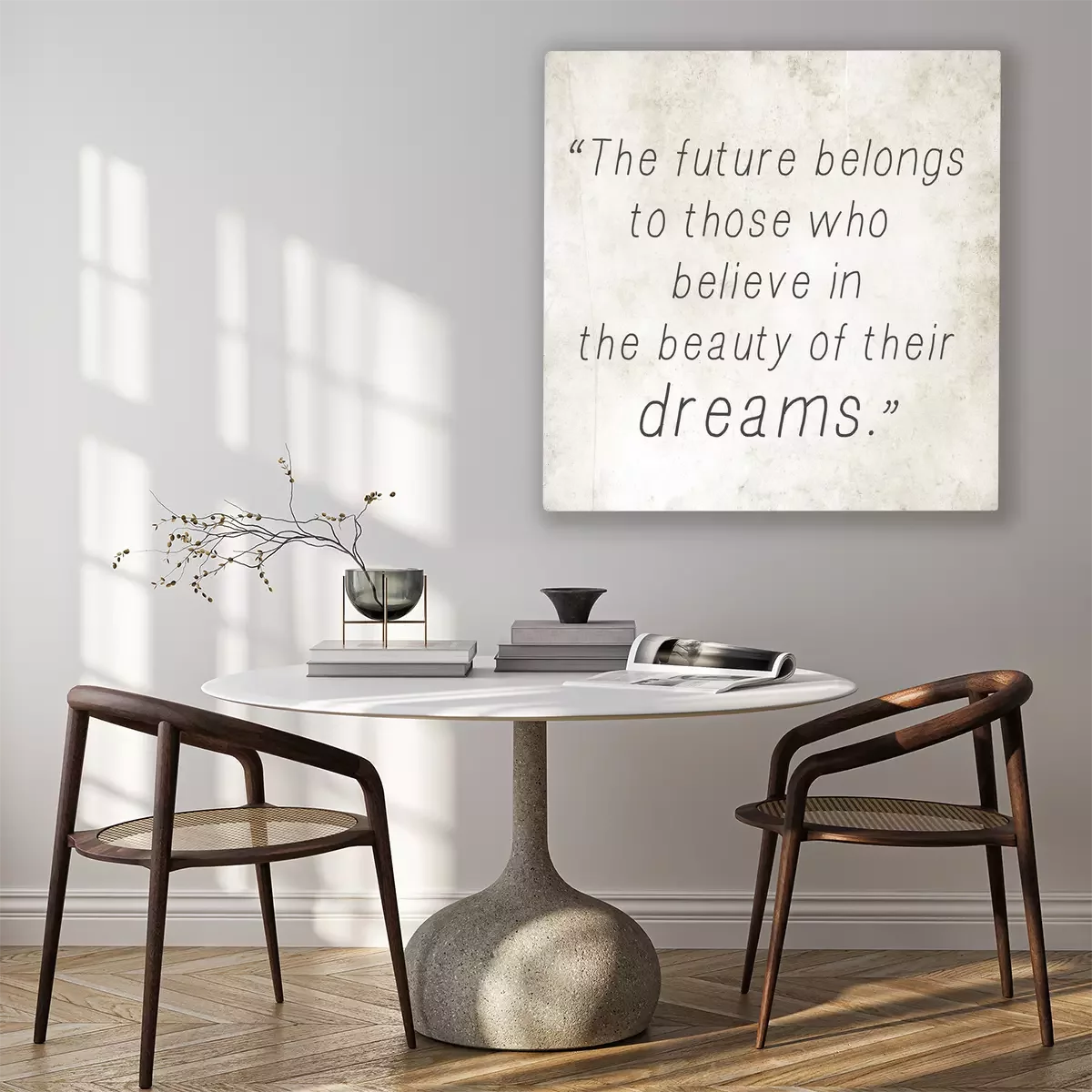 De print wordt aangebracht op hoogwaardig canvas dat op een schildersweefgetouw (spieraam) wordt gespannen. Omdat de print de zijranden bedekt, hoeft het ontwerp niet met een extra kader te worden omlijst. Wij raden ook composities aan die uit meerdere foto's bestaan en zo een coherente compositie vormen.