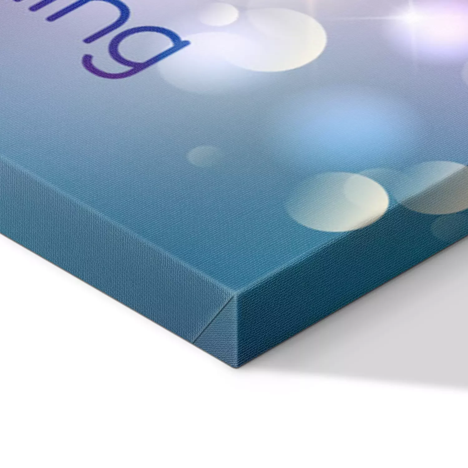 De print wordt aangebracht op hoogwaardig canvas dat op een schildersweefgetouw (spieraam) wordt gespannen. Omdat de print de zijranden bedekt, hoeft het ontwerp niet met een extra kader te worden omlijst. Wij raden ook composities aan die uit meerdere foto's bestaan en zo een coherente compositie vormen.
