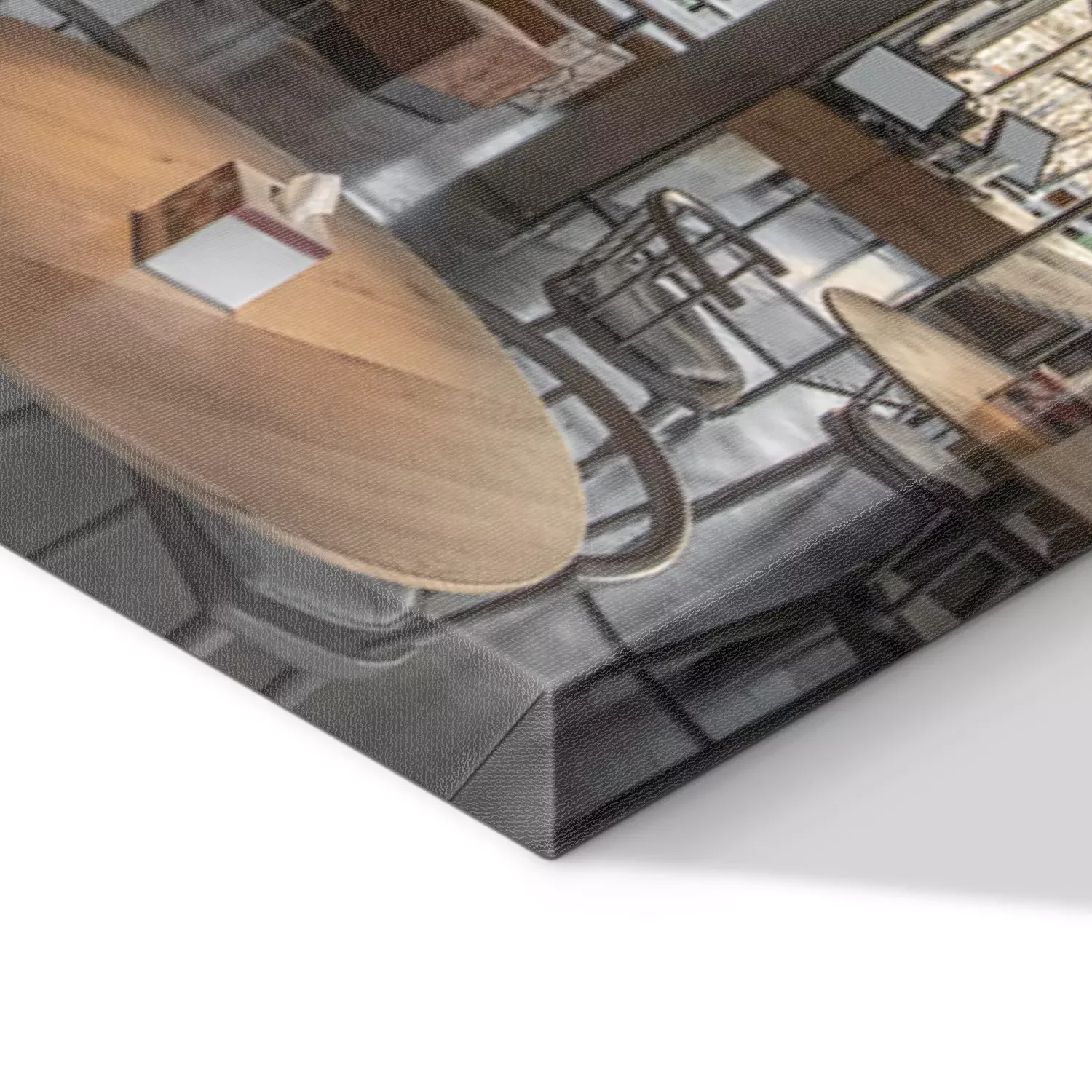 De print wordt aangebracht op hoogwaardig canvas dat op een schildersweefgetouw (spieraam) wordt gespannen. Omdat de print de zijranden bedekt, hoeft het ontwerp niet met een extra kader te worden omlijst. Wij raden ook composities aan die uit meerdere foto's bestaan en zo een coherente compositie vormen.