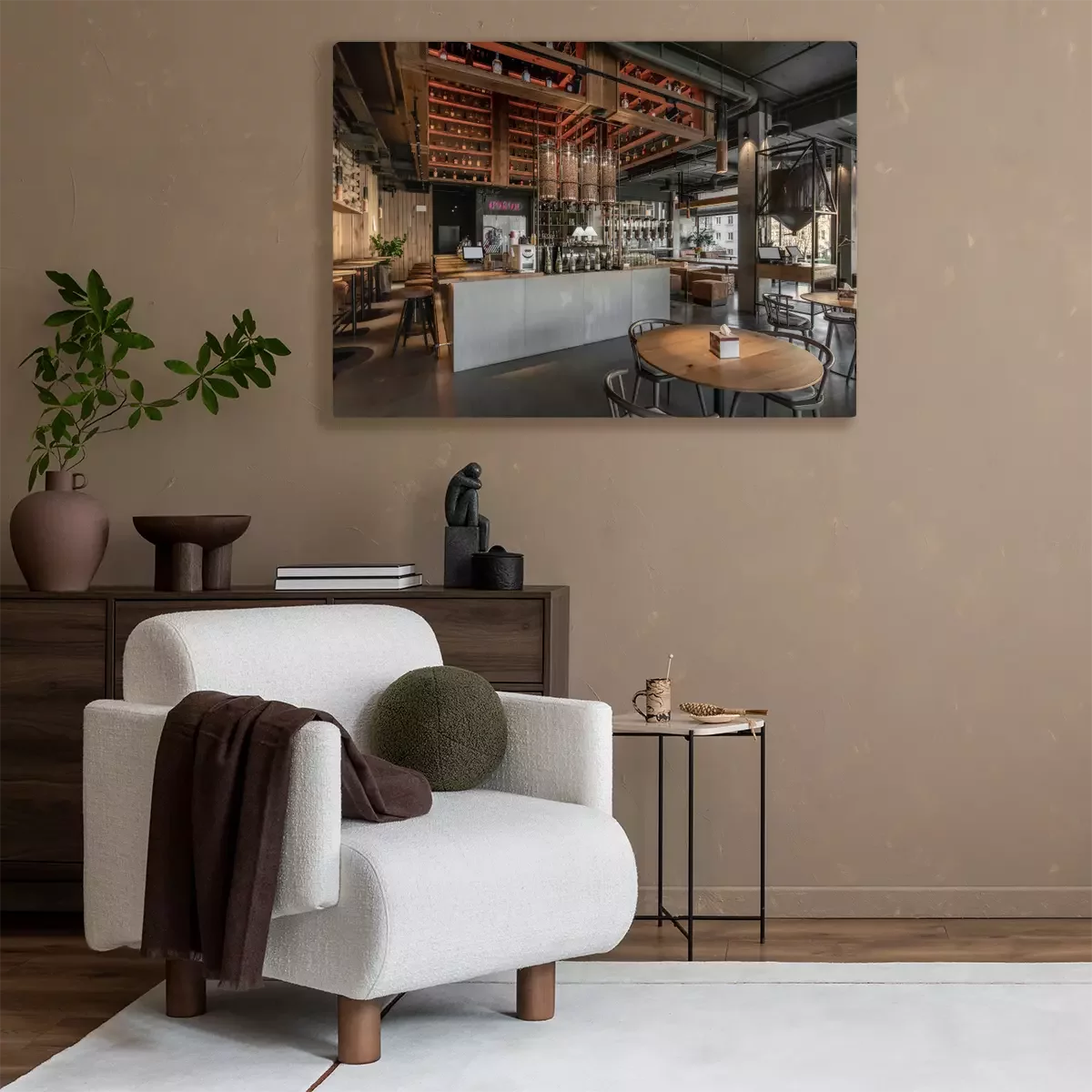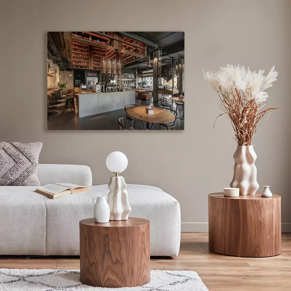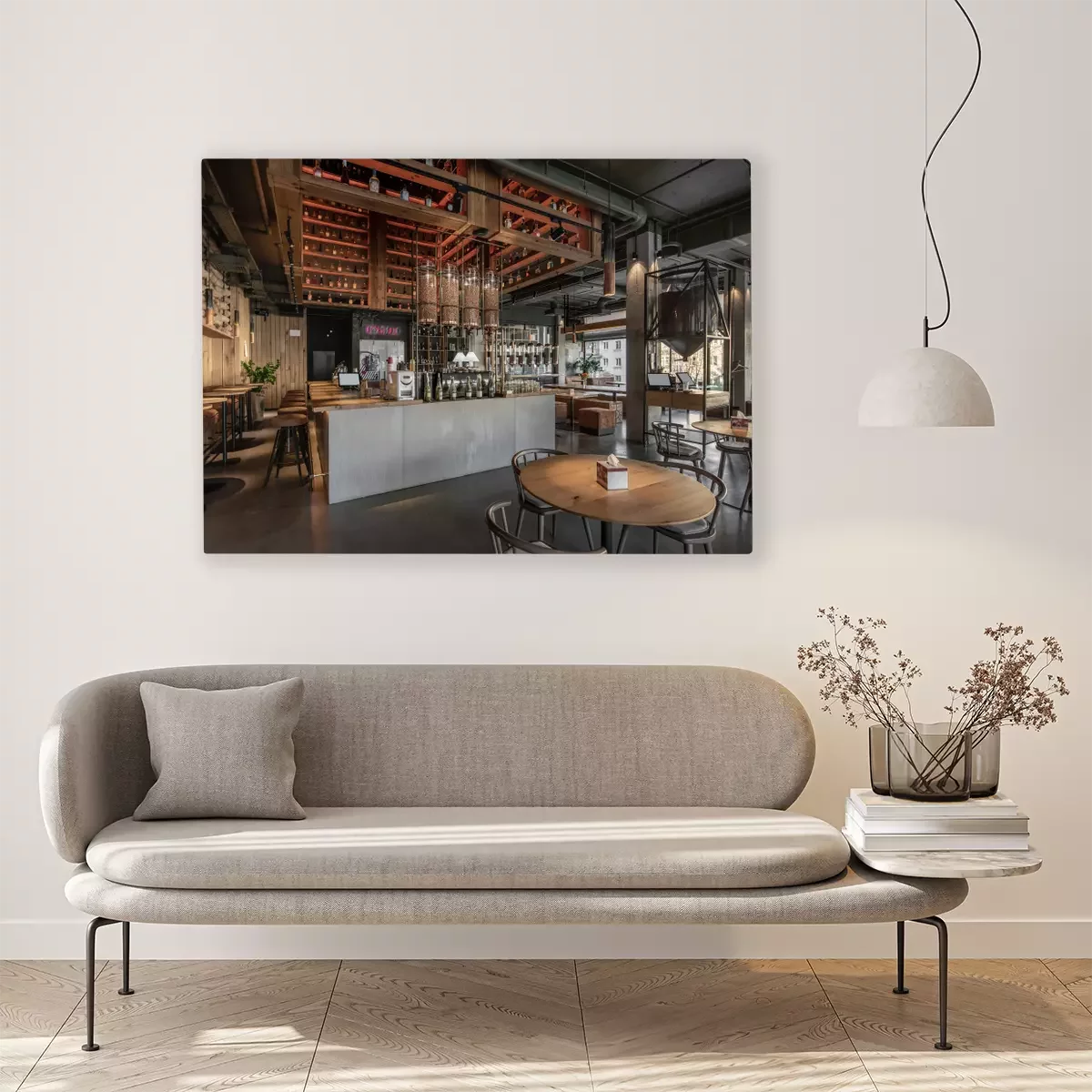 Canvas: Interior of modern cafe in loft style