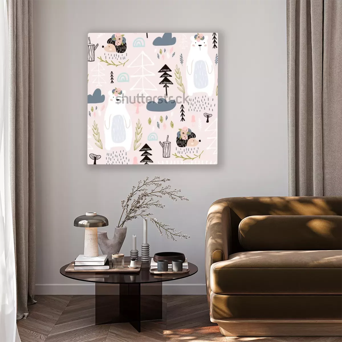De print wordt aangebracht op hoogwaardig canvas dat op een schildersweefgetouw (spieraam) wordt gespannen. Omdat de print de zijranden bedekt, hoeft het ontwerp niet met een extra kader te worden omlijst. Wij raden ook composities aan die uit meerdere foto's bestaan en zo een coherente compositie vormen.