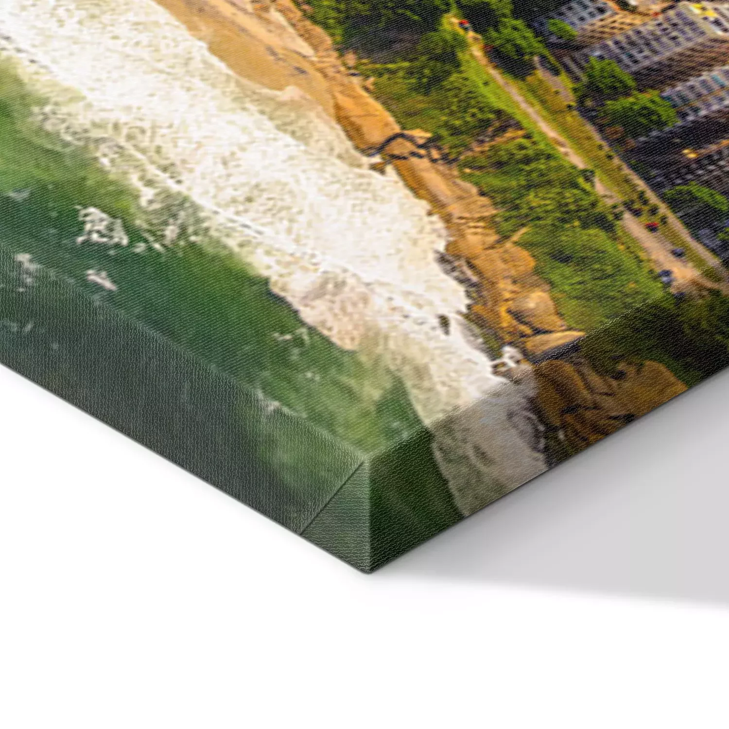 De print wordt aangebracht op hoogwaardig canvas dat op een schildersweefgetouw (spieraam) wordt gespannen. Omdat de print de zijranden bedekt, hoeft het ontwerp niet met een extra kader te worden omlijst. Wij raden ook composities aan die uit meerdere foto's bestaan en zo een coherente compositie vormen.