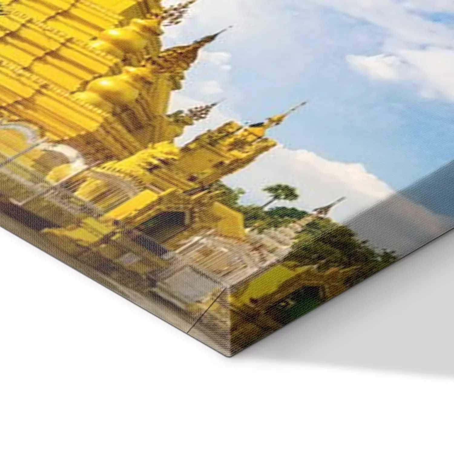 De print wordt aangebracht op hoogwaardig canvas dat op een schildersweefgetouw (spieraam) wordt gespannen. Omdat de print de zijranden bedekt, hoeft het ontwerp niet met een extra kader te worden omlijst. Wij raden ook composities aan die uit meerdere foto's bestaan en zo een coherente compositie vormen.