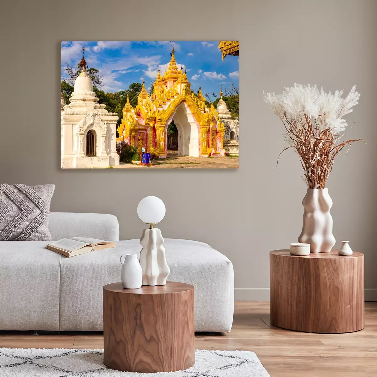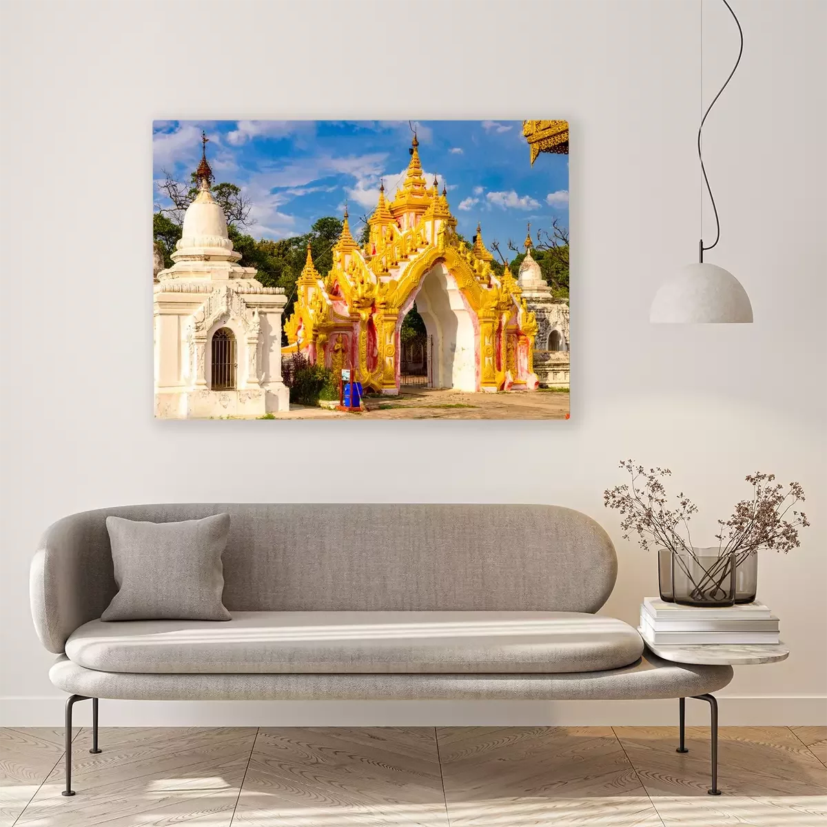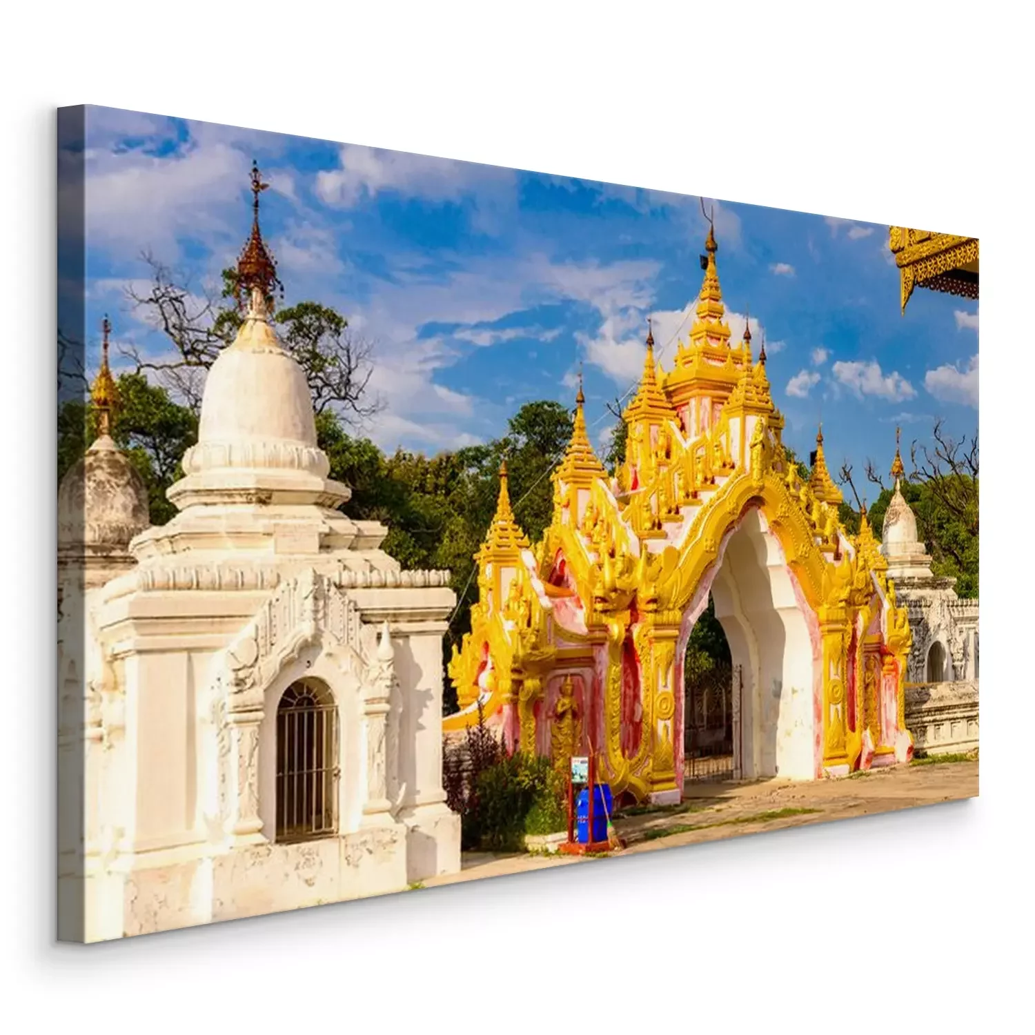 Canvas: It's Kuthodaw Pagoda (Mahalawka Marazein), (Royal Merit), is a Buddhist stupa, in Mandalay, Burma (Myanmar), that contains the world's largest book.