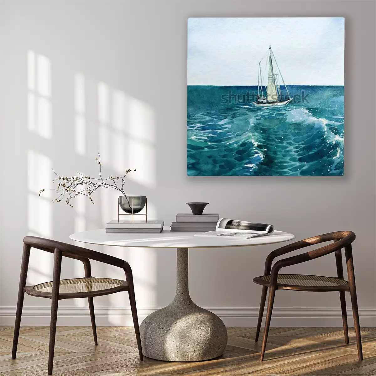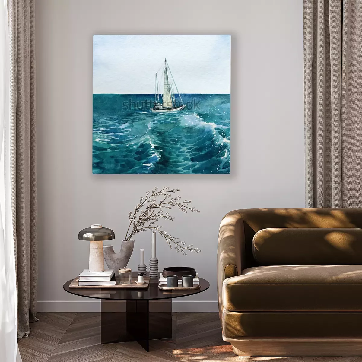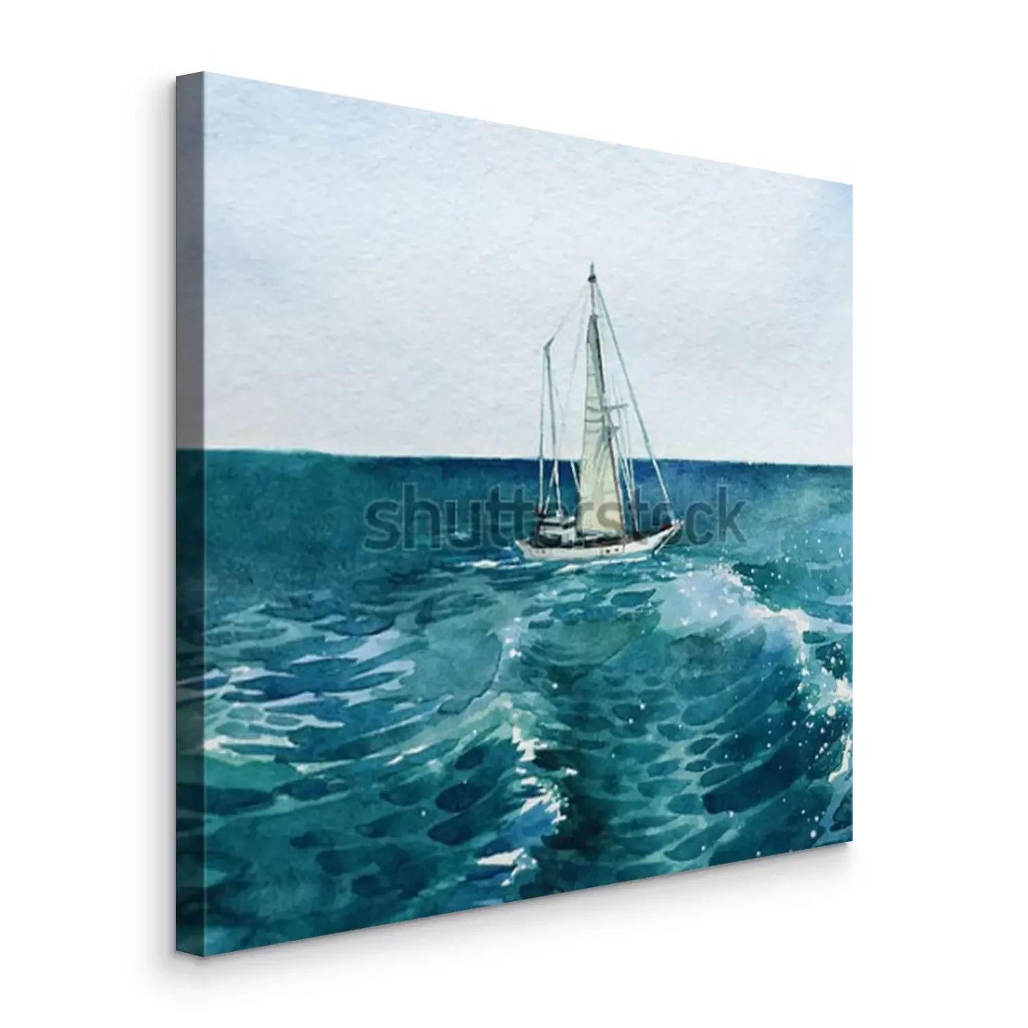 Canvas: Jacht. schip. zee. waterverf. deze afbeelding kan worden gebruikt als achtergrond, als een onafhankelijk object, als decoratie, als briefkaart, achtergrond of als afdruk