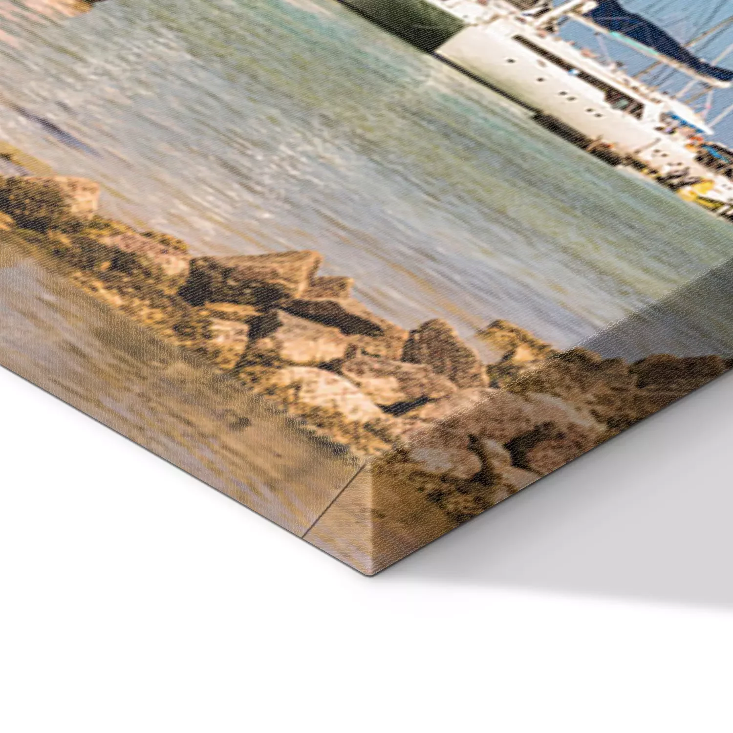 De print wordt aangebracht op hoogwaardig canvas dat op een schildersweefgetouw (spieraam) wordt gespannen. Omdat de print de zijranden bedekt, hoeft het ontwerp niet met een extra kader te worden omlijst. Wij raden ook composities aan die uit meerdere foto's bestaan en zo een coherente compositie vormen.
