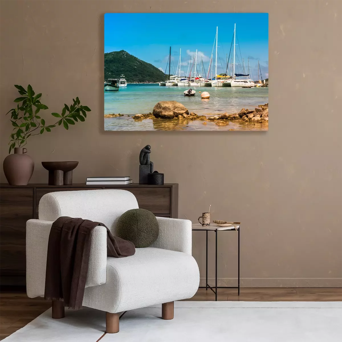 Canvas: Jachten Marina in Praslin eiland Seychellen