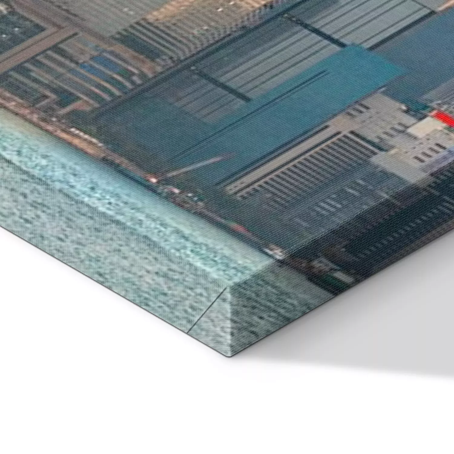De print wordt aangebracht op hoogwaardig canvas dat op een schildersweefgetouw (spieraam) wordt gespannen. Omdat de print de zijranden bedekt, hoeft het ontwerp niet met een extra kader te worden omlijst. Wij raden ook composities aan die uit meerdere foto's bestaan en zo een coherente compositie vormen.