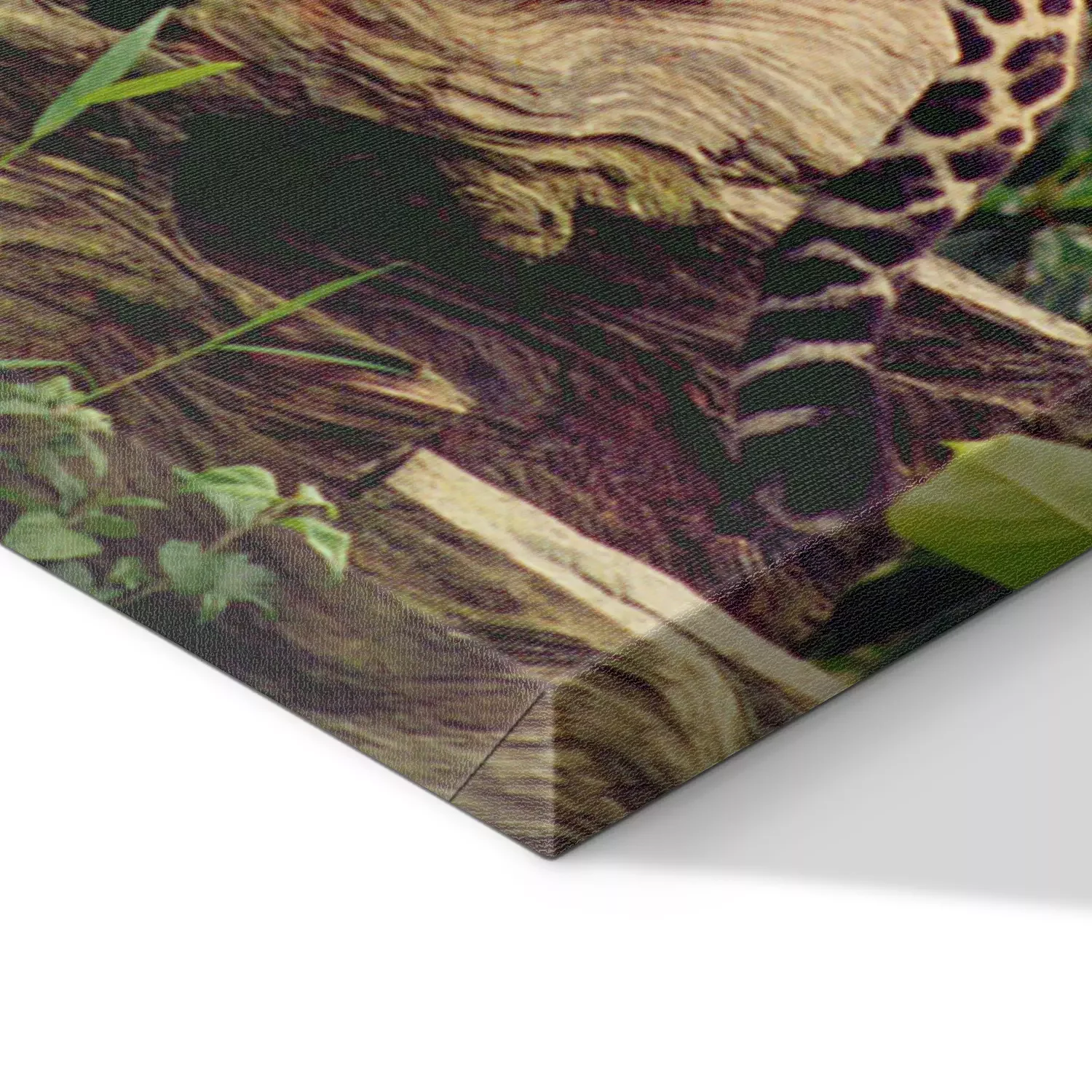 De print wordt aangebracht op hoogwaardig canvas dat op een schildersweefgetouw (spieraam) wordt gespannen. Omdat de print de zijranden bedekt, hoeft het ontwerp niet met een extra kader te worden omlijst. Wij raden ook composities aan die uit meerdere foto's bestaan en zo een coherente compositie vormen.