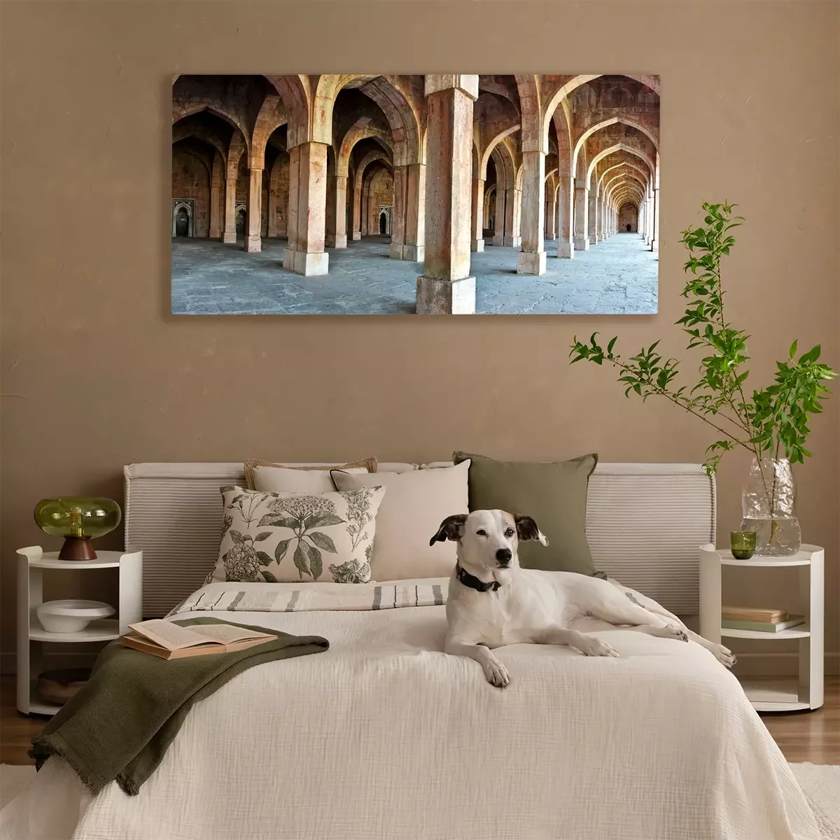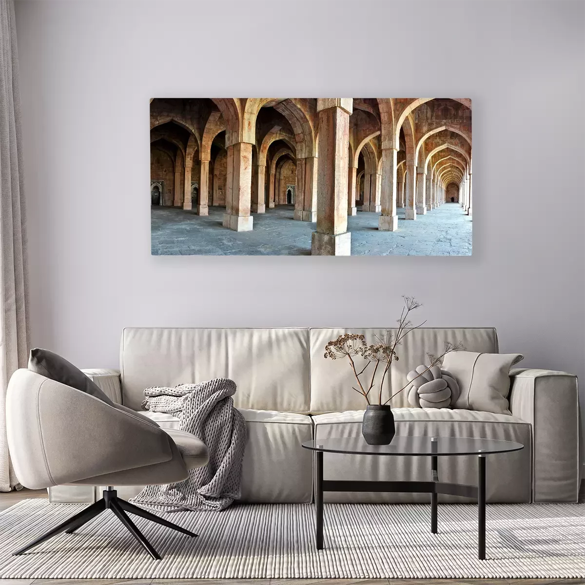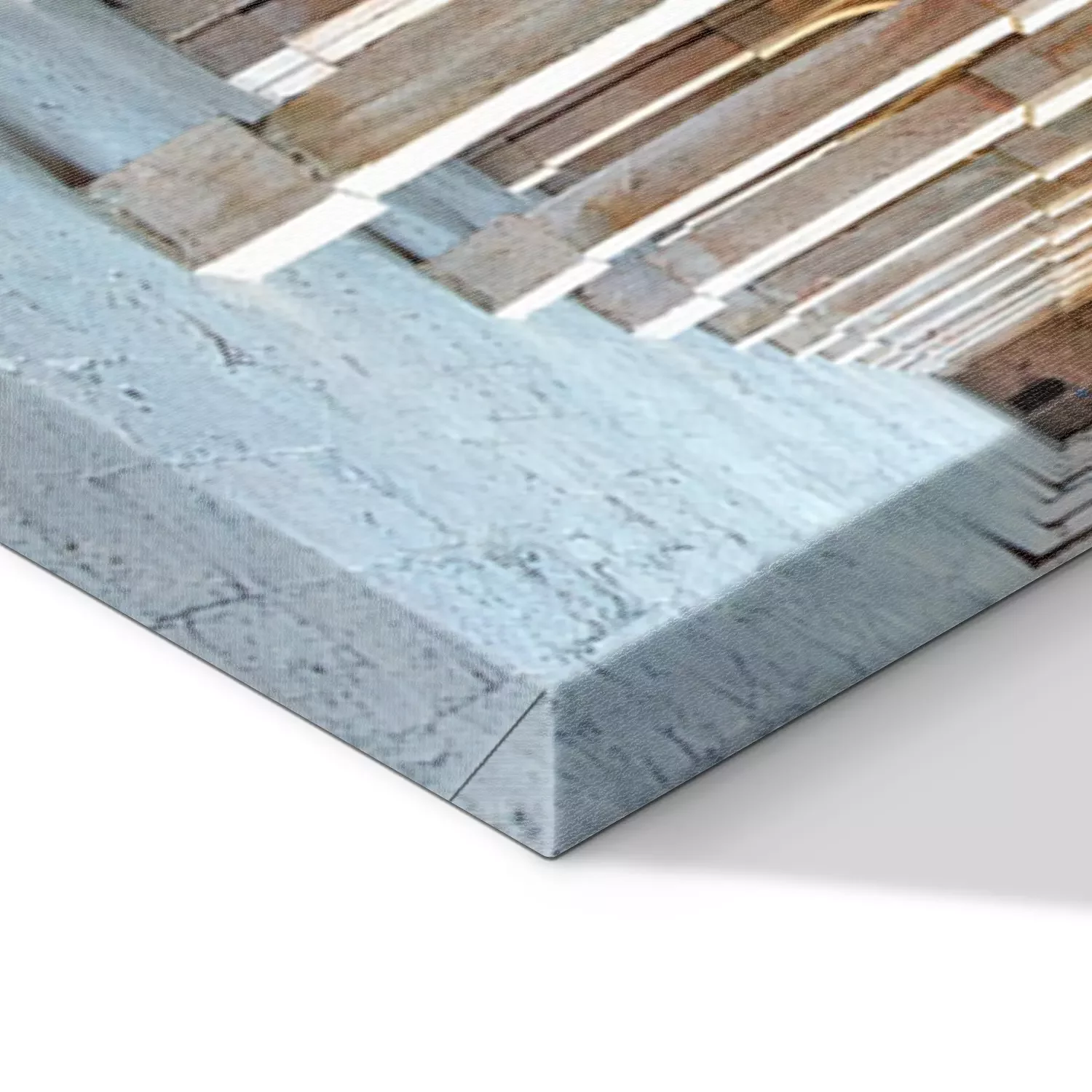 De print wordt aangebracht op hoogwaardig canvas dat op een schildersweefgetouw (spieraam) wordt gespannen. Omdat de print de zijranden bedekt, hoeft het ontwerp niet met een extra kader te worden omlijst. Wij raden ook composities aan die uit meerdere foto's bestaan en zo een coherente compositie vormen.