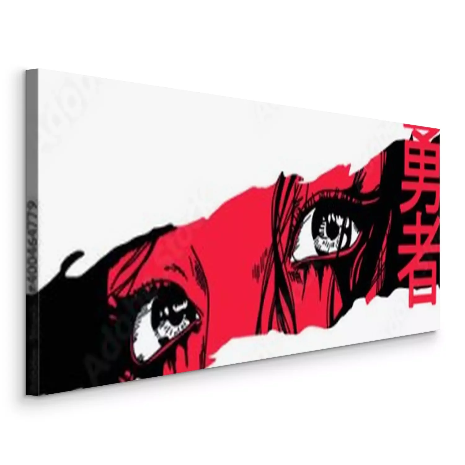 Canvas Japanese slogan with manga face Translation: "Hero." Vector design for t-shirt graphics, banner, fashion prints, slogan tees, stickers, flyer, posters and other creative uses