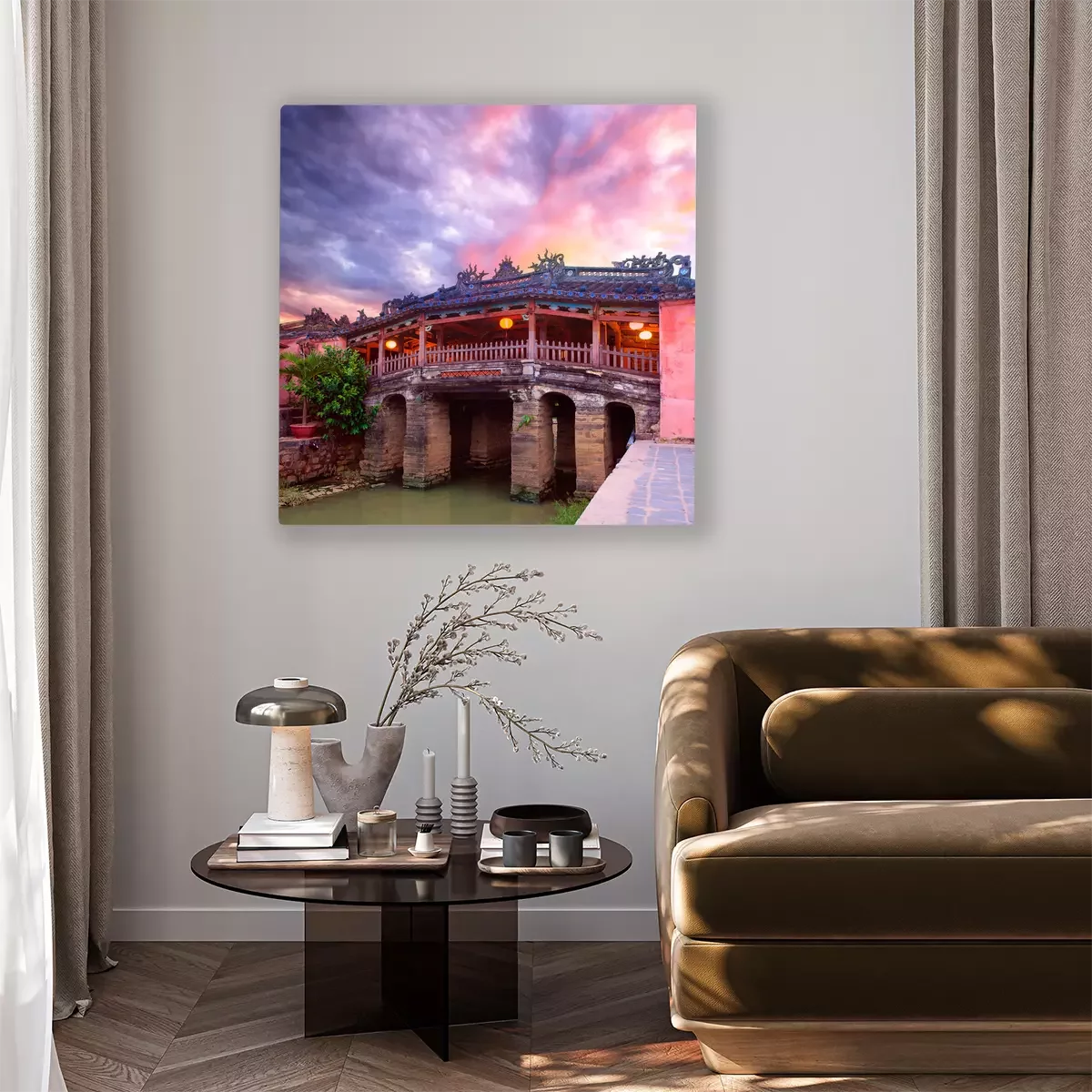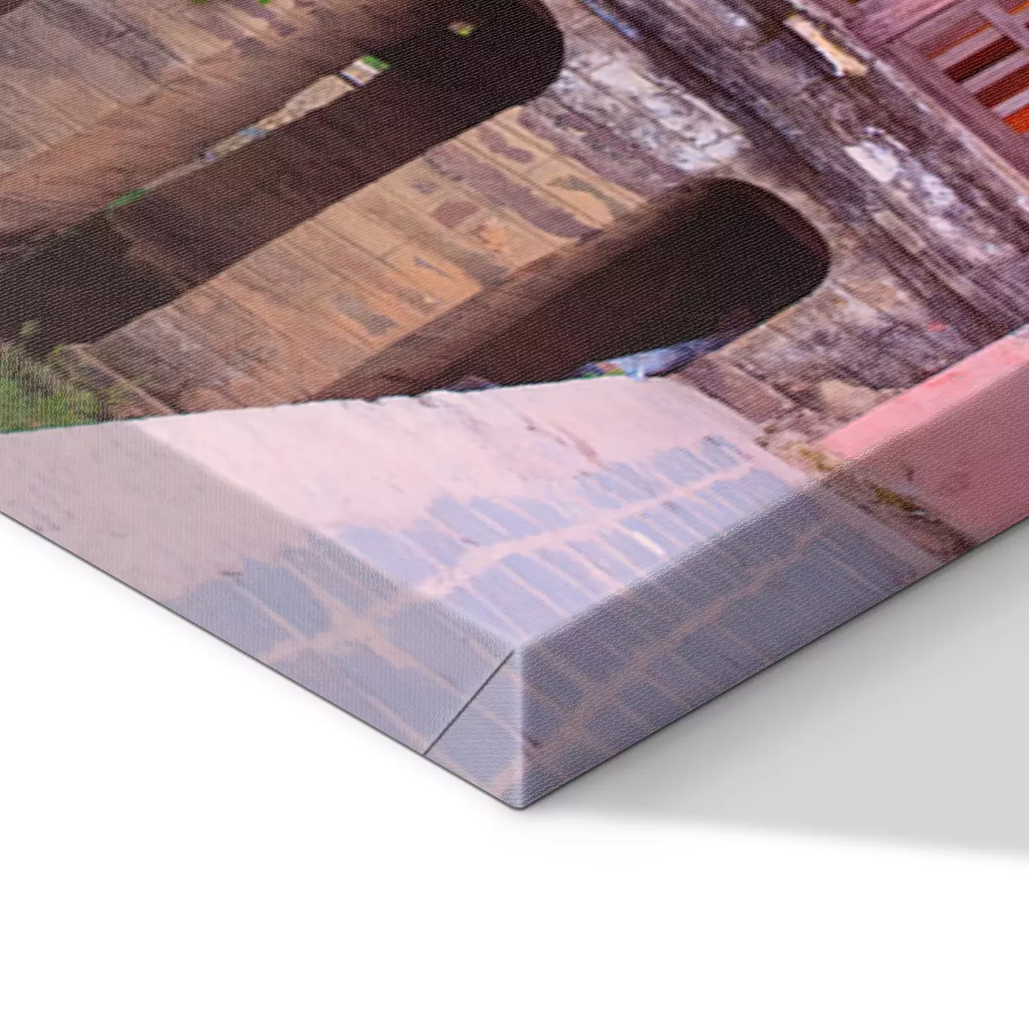 De print wordt aangebracht op hoogwaardig canvas dat op een schildersweefgetouw (spieraam) wordt gespannen. Omdat de print de zijranden bedekt, hoeft het ontwerp niet met een extra kader te worden omlijst. Wij raden ook composities aan die uit meerdere foto's bestaan en zo een coherente compositie vormen.