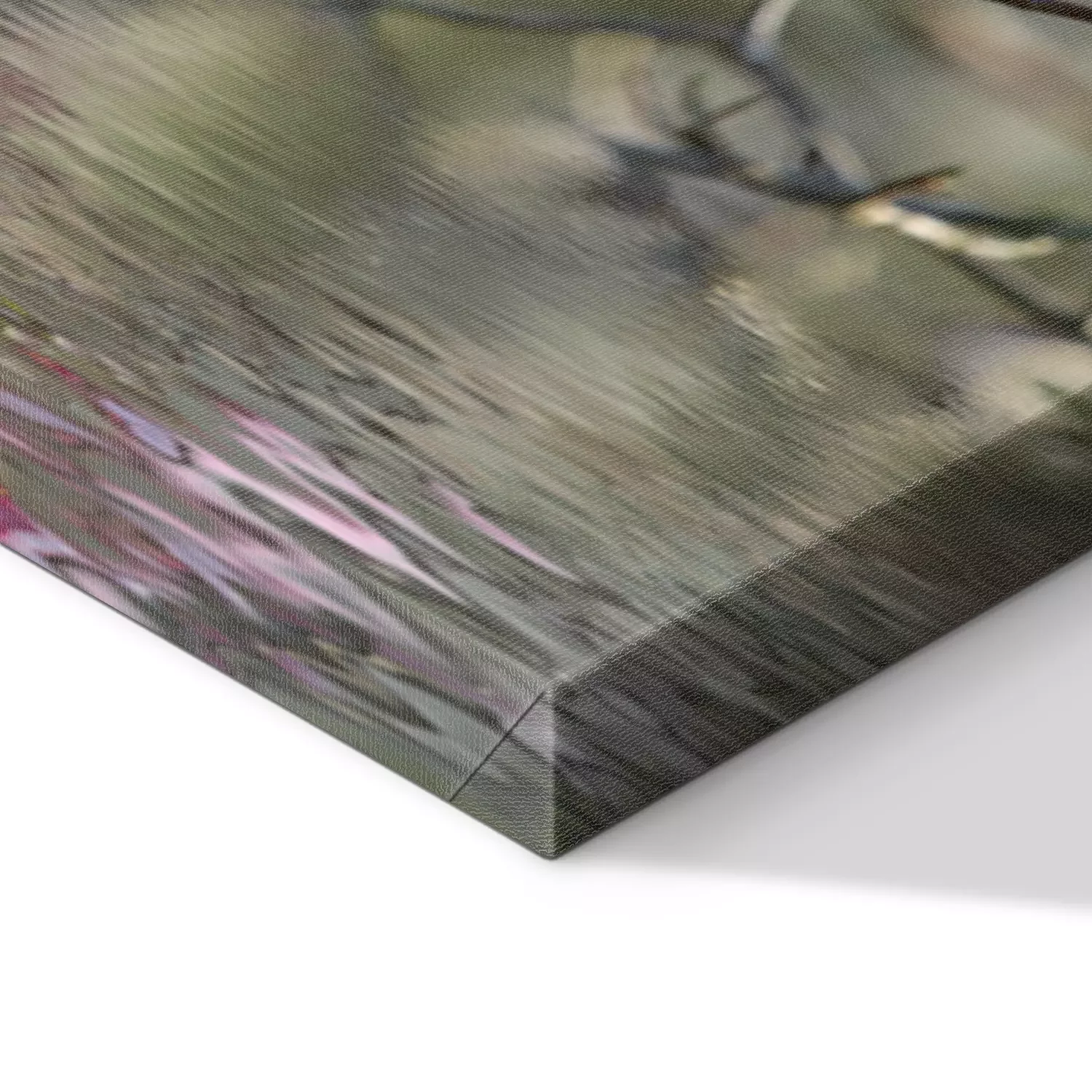 De print wordt aangebracht op hoogwaardig canvas dat op een schildersweefgetouw (spieraam) wordt gespannen. Omdat de print de zijranden bedekt, hoeft het ontwerp niet met een extra kader te worden omlijst. Wij raden ook composities aan die uit meerdere foto's bestaan en zo een coherente compositie vormen.