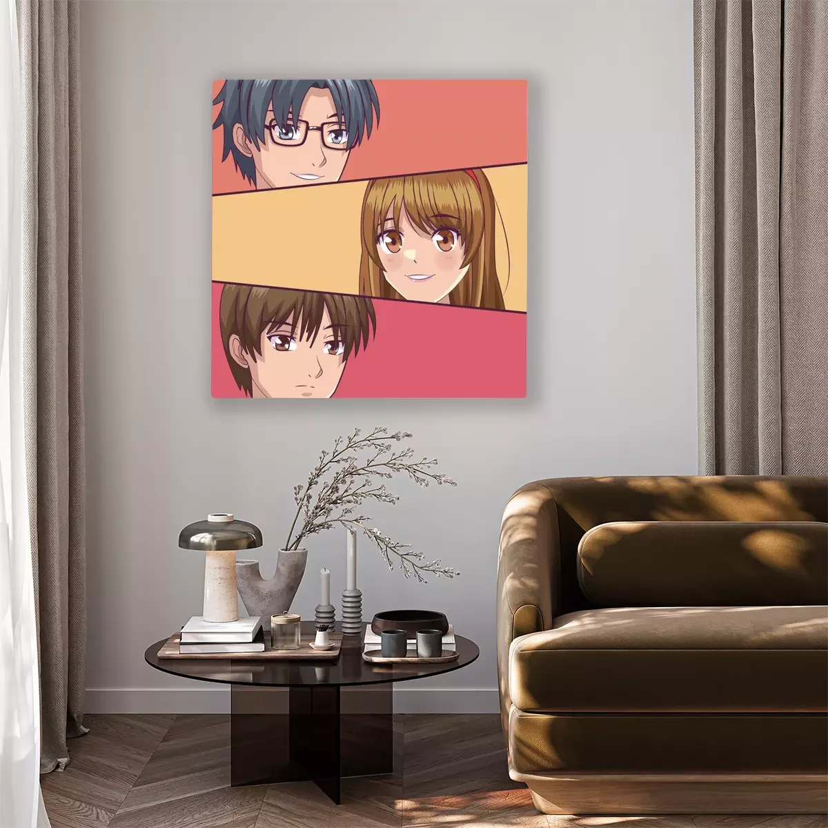 De print wordt aangebracht op hoogwaardig canvas dat op een schildersweefgetouw (spieraam) wordt gespannen. Omdat de print de zijranden bedekt, hoeft het ontwerp niet met een extra kader te worden omlijst. Wij raden ook composities aan die uit meerdere foto's bestaan en zo een coherente compositie vormen.