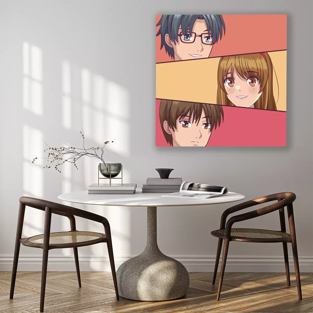 Canvas Jonge manga wordt geconfronteerd met tekenfilms