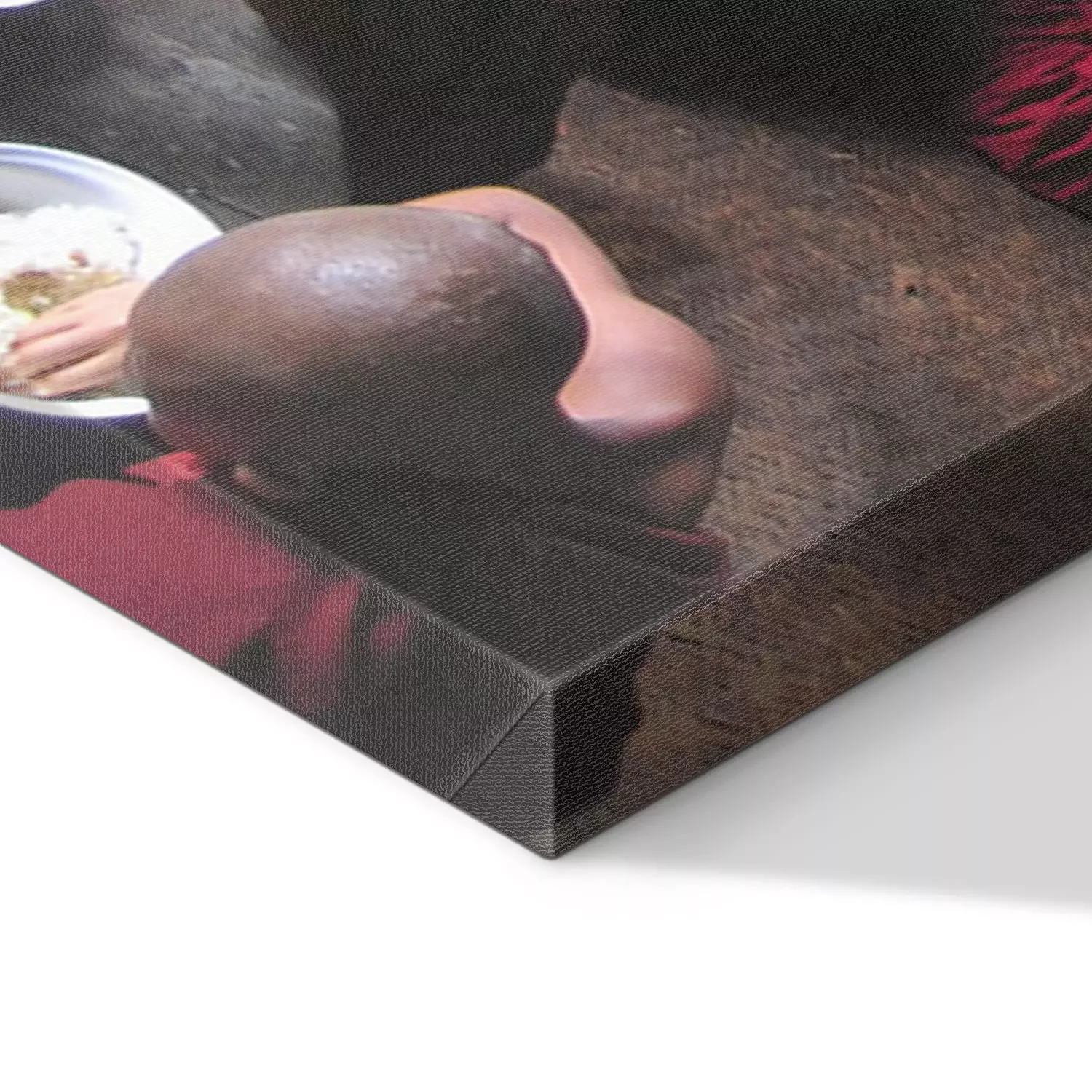 De print wordt aangebracht op hoogwaardig canvas dat op een schildersweefgetouw (spieraam) wordt gespannen. Omdat de print de zijranden bedekt, hoeft het ontwerp niet met een extra kader te worden omlijst. Wij raden ook composities aan die uit meerdere foto's bestaan en zo een coherente compositie vormen.