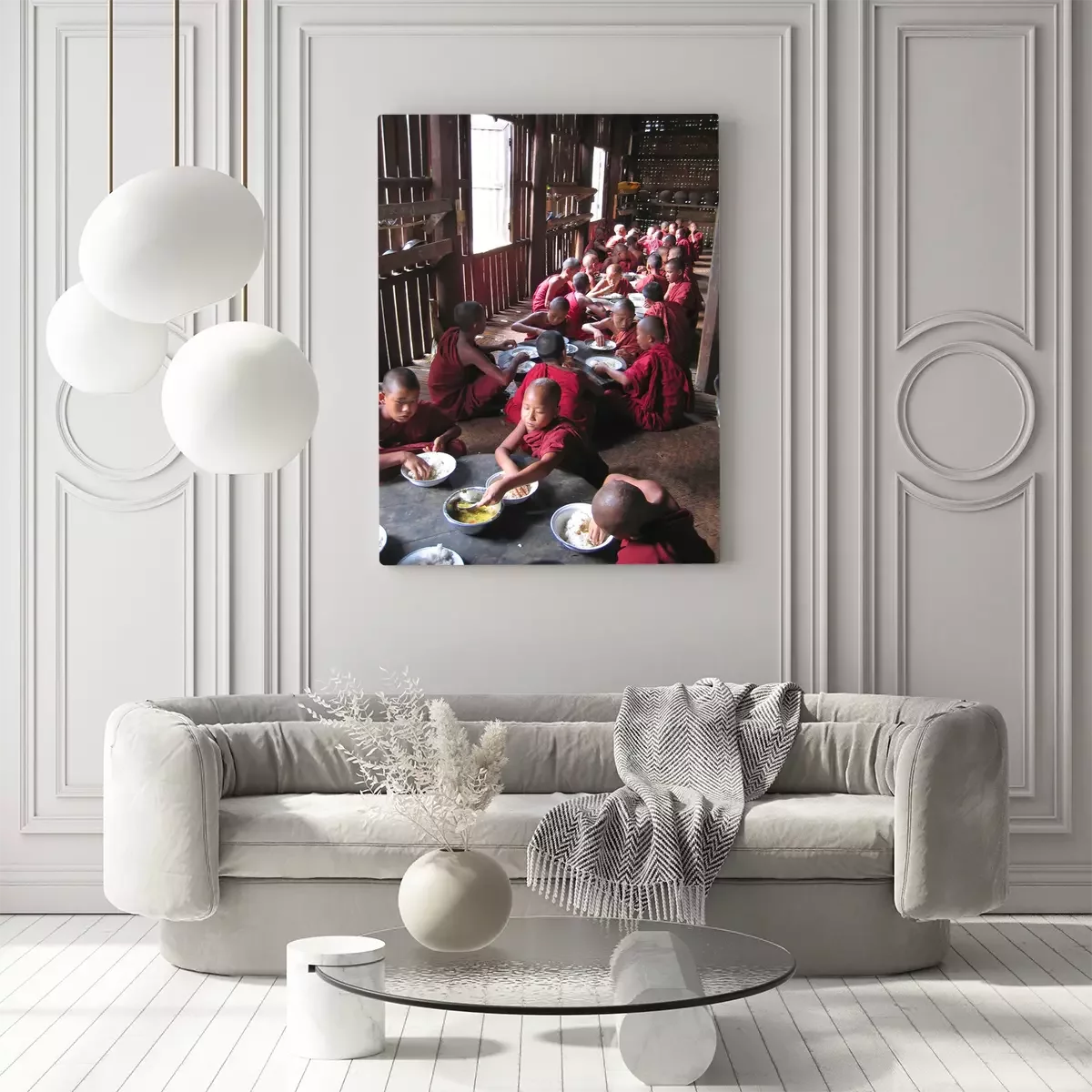 Canvas: jonge monnik eten samen in hun tempel, myanmar