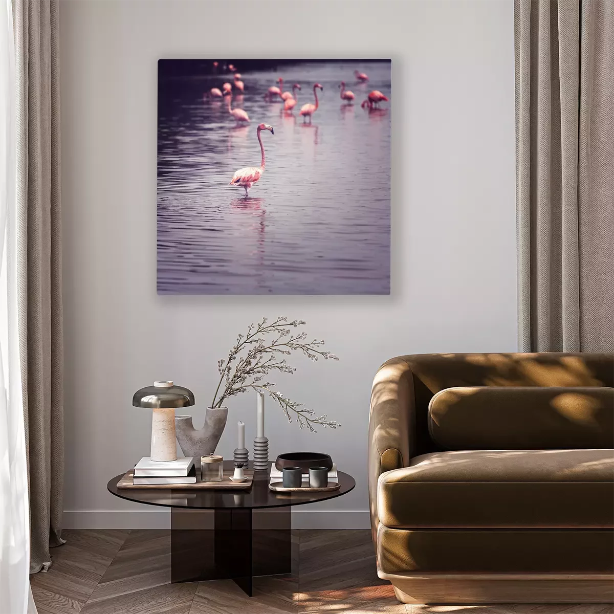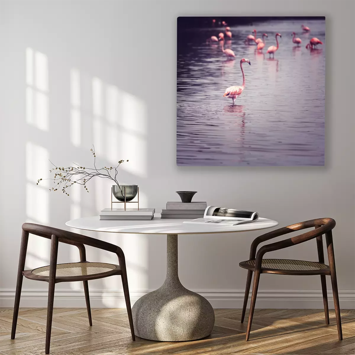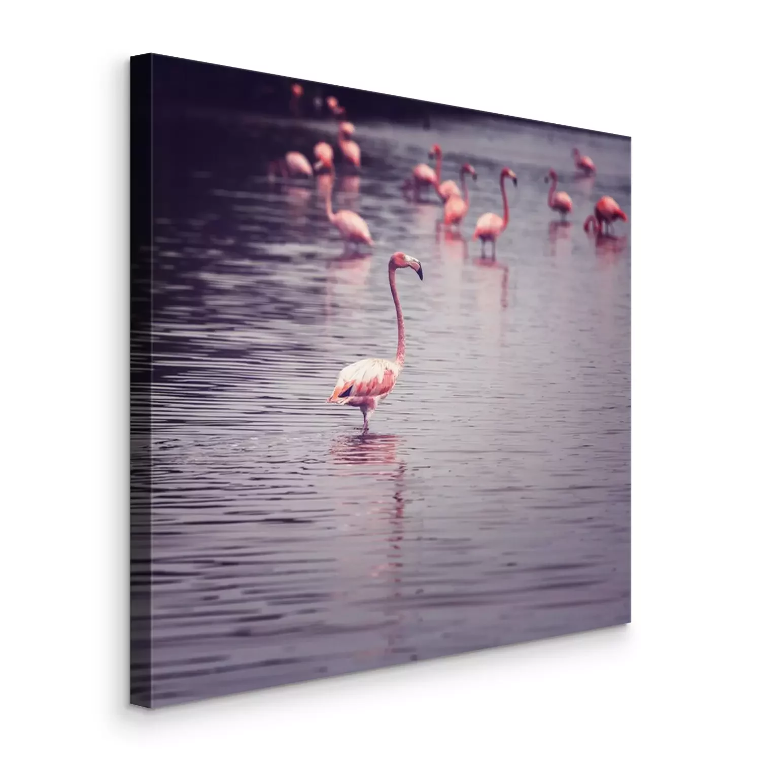 Canvas: Jonge roze flamingo's in het water