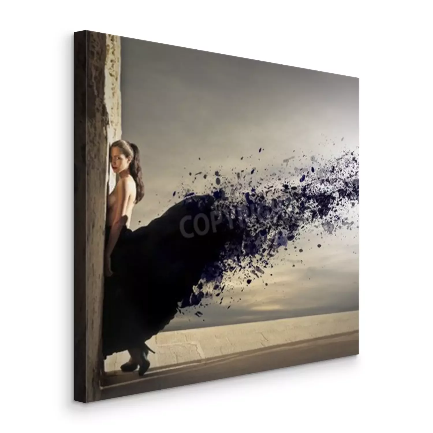 Canvas: Jonge vrouw met een mooie zwarte jurk