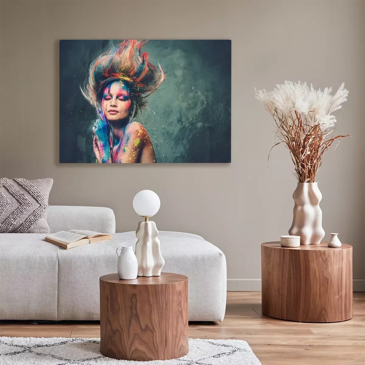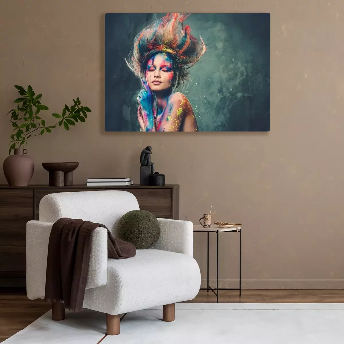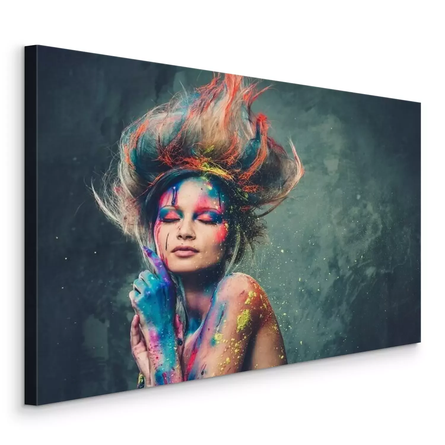 Canvas: Jonge vrouw muze met creatieve body art en kapsel