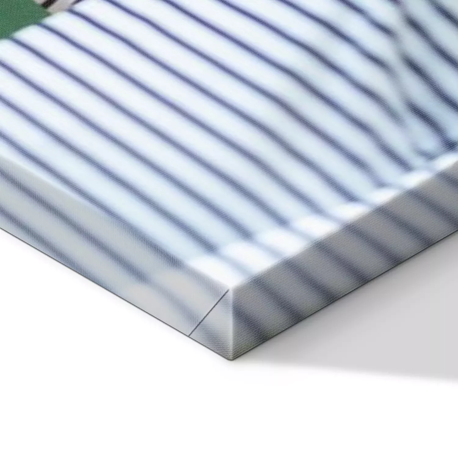 De print wordt aangebracht op hoogwaardig canvas dat op een schildersweefgetouw (spieraam) wordt gespannen. Omdat de print de zijranden bedekt, hoeft het ontwerp niet met een extra kader te worden omlijst. Wij raden ook composities aan die uit meerdere foto's bestaan en zo een coherente compositie vormen.