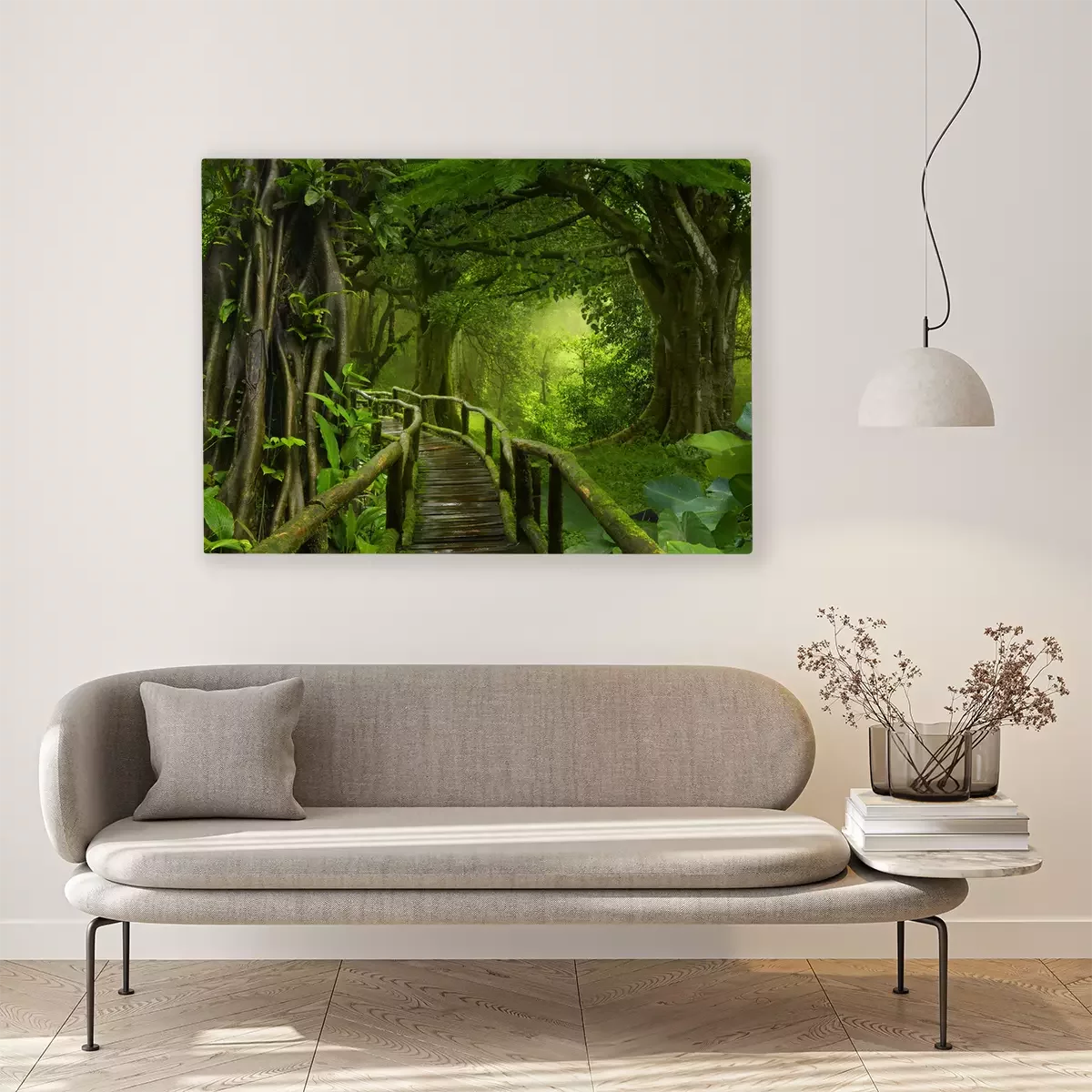 De print wordt aangebracht op hoogwaardig canvas dat op een schildersweefgetouw (spieraam) wordt gespannen. Omdat de print de zijranden bedekt, hoeft het ontwerp niet met een extra kader te worden omlijst. Wij raden ook composities aan die uit meerdere foto's bestaan en zo een coherente compositie vormen.
