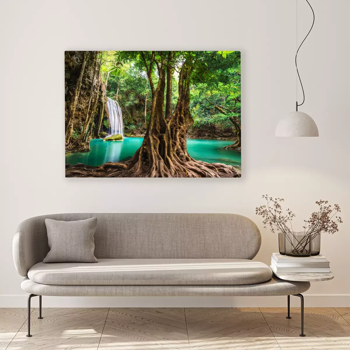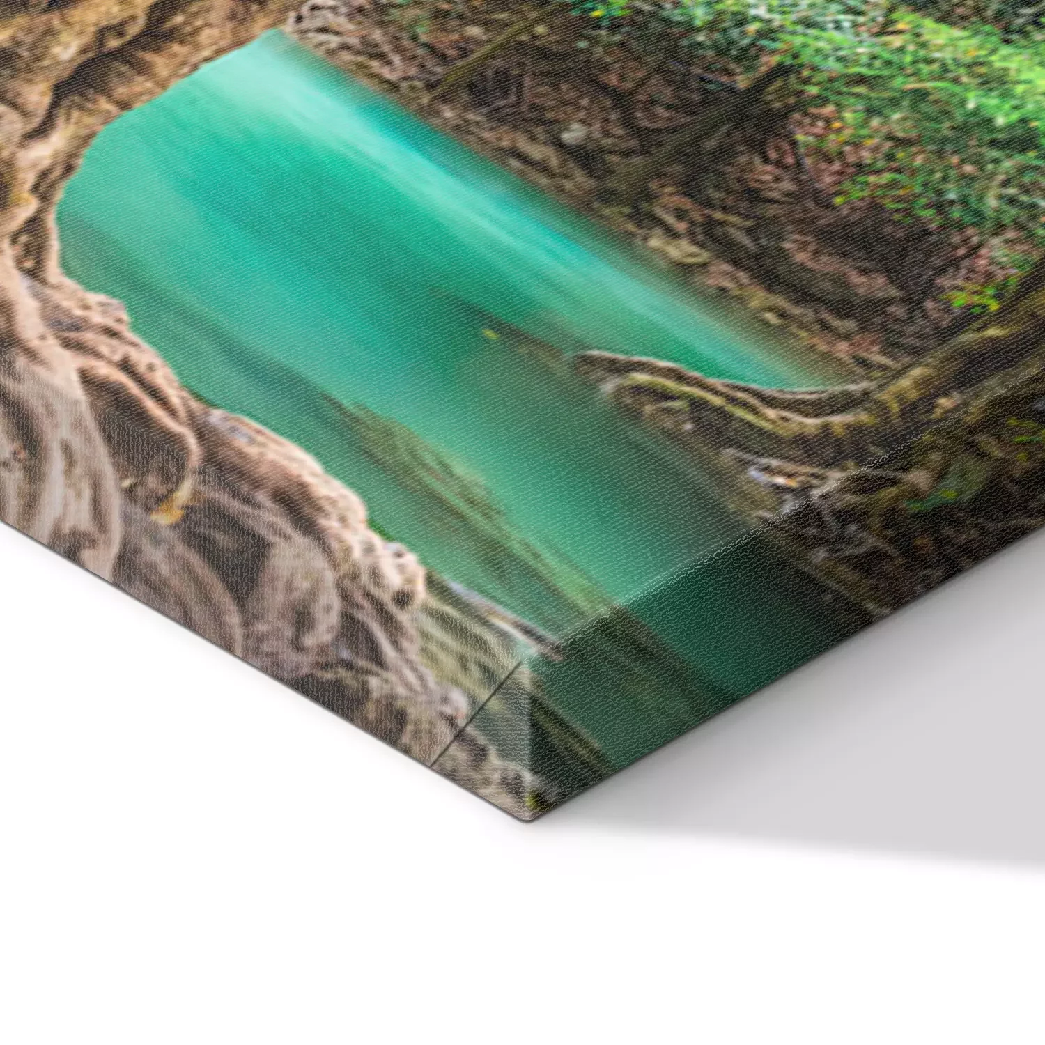 De print wordt aangebracht op hoogwaardig canvas dat op een schildersweefgetouw (spieraam) wordt gespannen. Omdat de print de zijranden bedekt, hoeft het ontwerp niet met een extra kader te worden omlijst. Wij raden ook composities aan die uit meerdere foto's bestaan en zo een coherente compositie vormen.