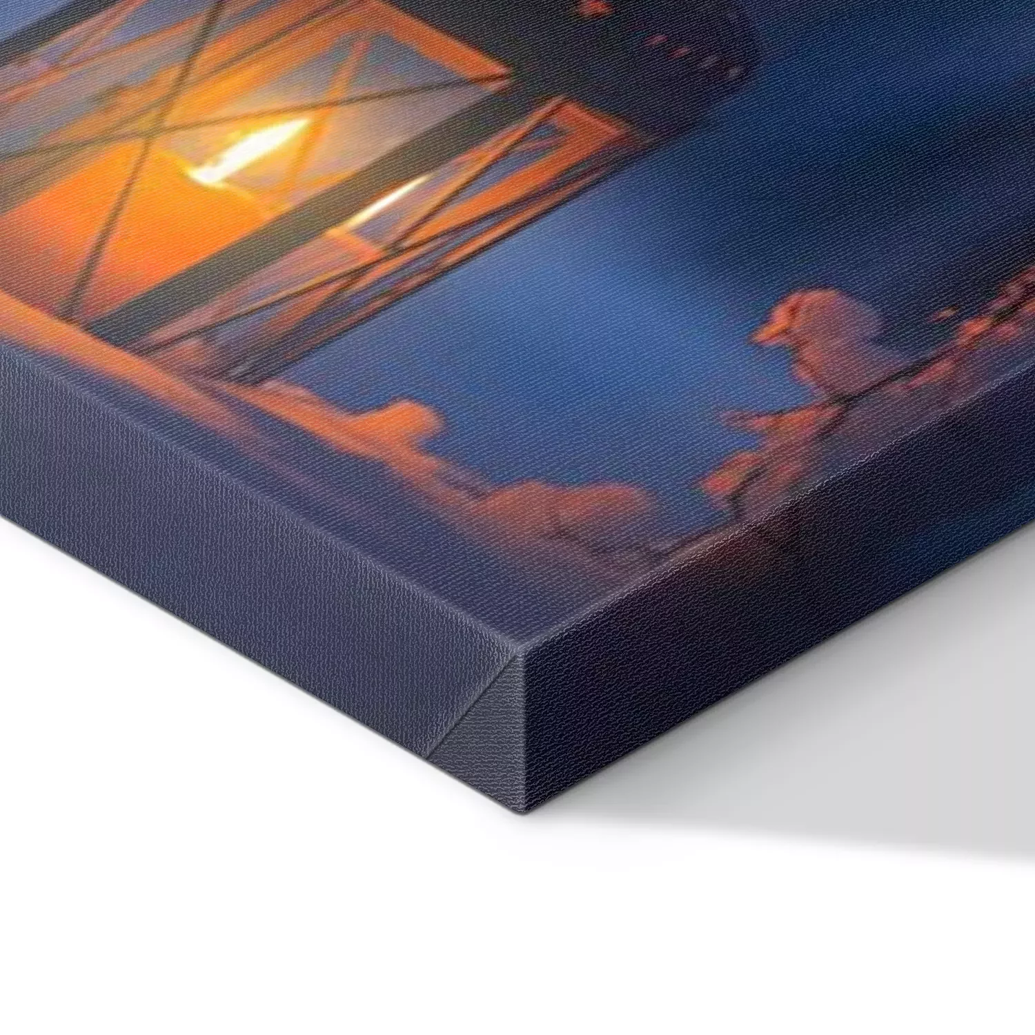 De print wordt aangebracht op hoogwaardig canvas dat op een schildersweefgetouw (spieraam) wordt gespannen. Omdat de print de zijranden bedekt, hoeft het ontwerp niet met een extra kader te worden omlijst. Wij raden ook composities aan die uit meerdere foto's bestaan en zo een coherente compositie vormen.