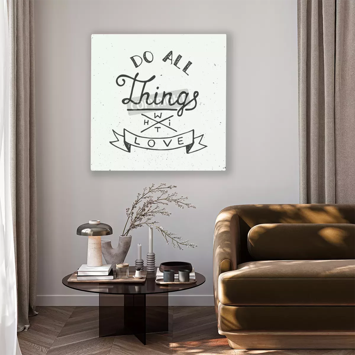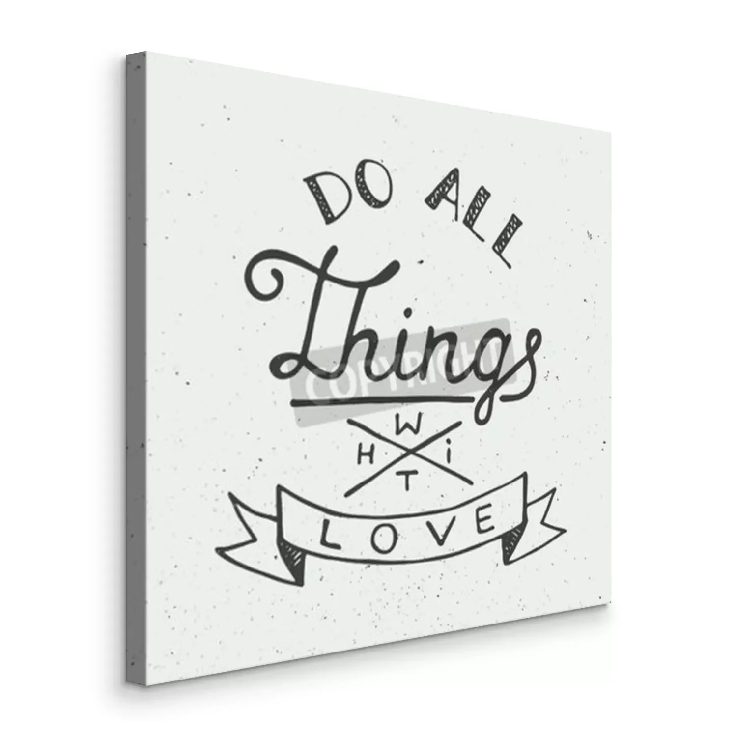 Canvas: Kaart met de hand getekende typografie design element voor wenskaarten, posters en print. Hou van alle dingen met liefde die op uitstekende achtergrond