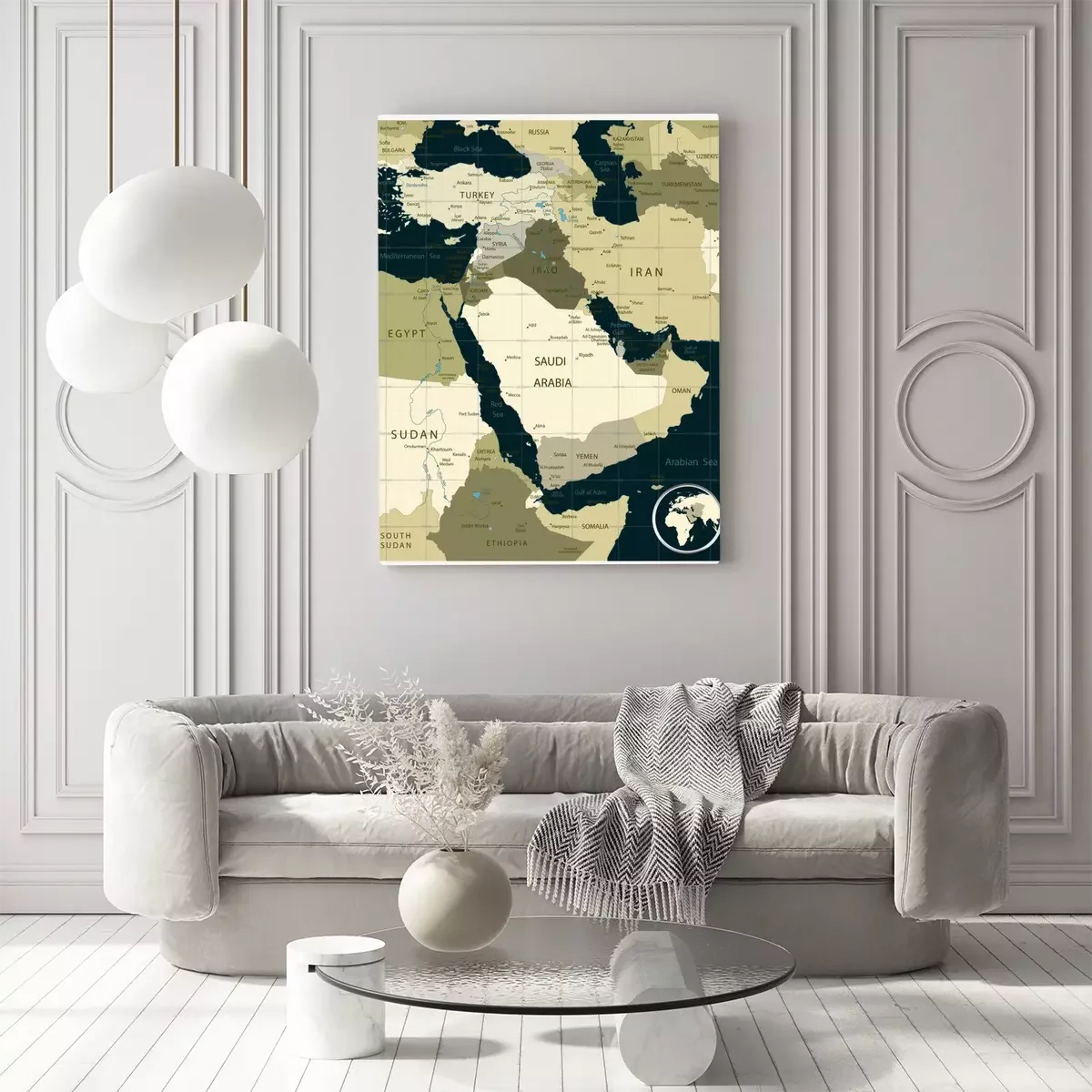 Canvas Kaart van het Midden-Oosten en Azië camouflagekleuren met een Quadrants