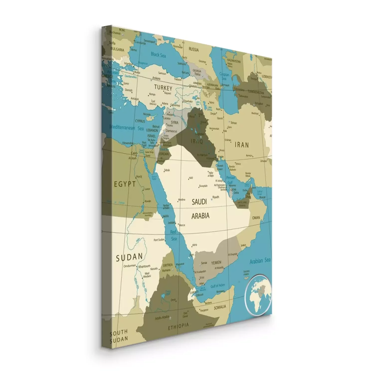 Canvas Kaart van het Midden-Oosten en Azië. militaire Kleuren