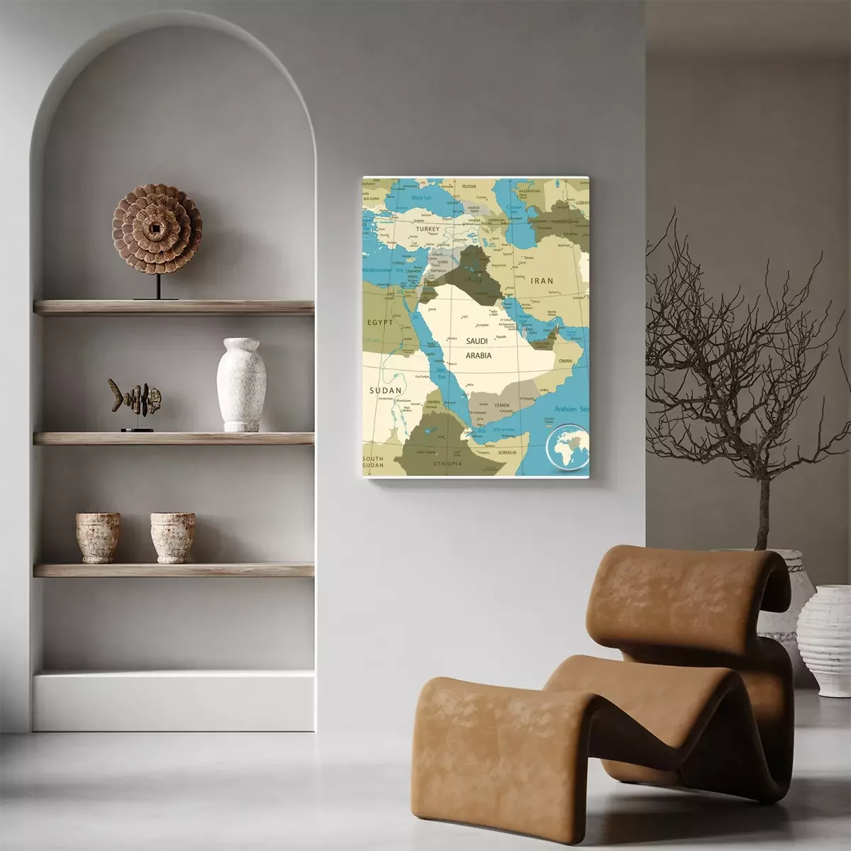 Canvas: Kaart van het Midden-Oosten en Azië. militaire Kleuren