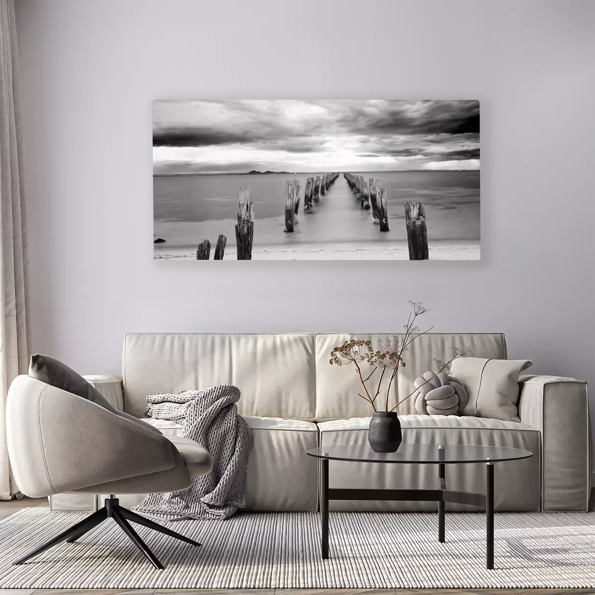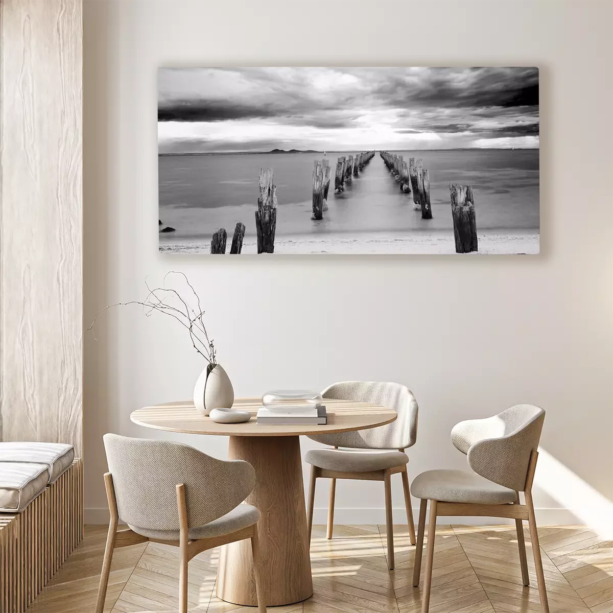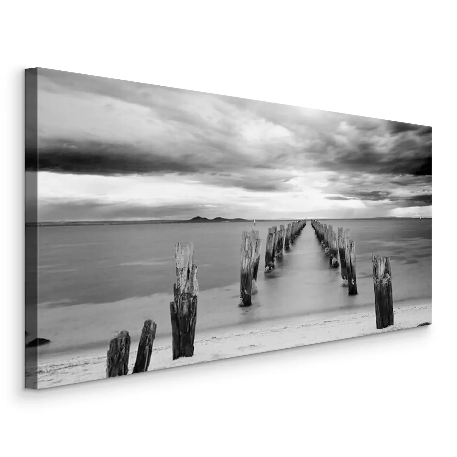 Canvas Kalme zee met houten palen