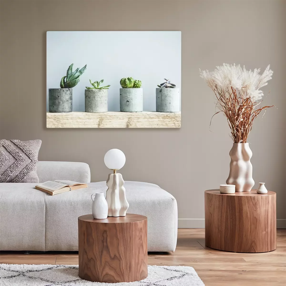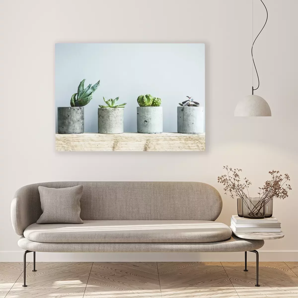 De print wordt aangebracht op hoogwaardig canvas dat op een schildersweefgetouw (spieraam) wordt gespannen. Omdat de print de zijranden bedekt, hoeft het ontwerp niet met een extra kader te worden omlijst. Wij raden ook composities aan die uit meerdere foto's bestaan en zo een coherente compositie vormen.