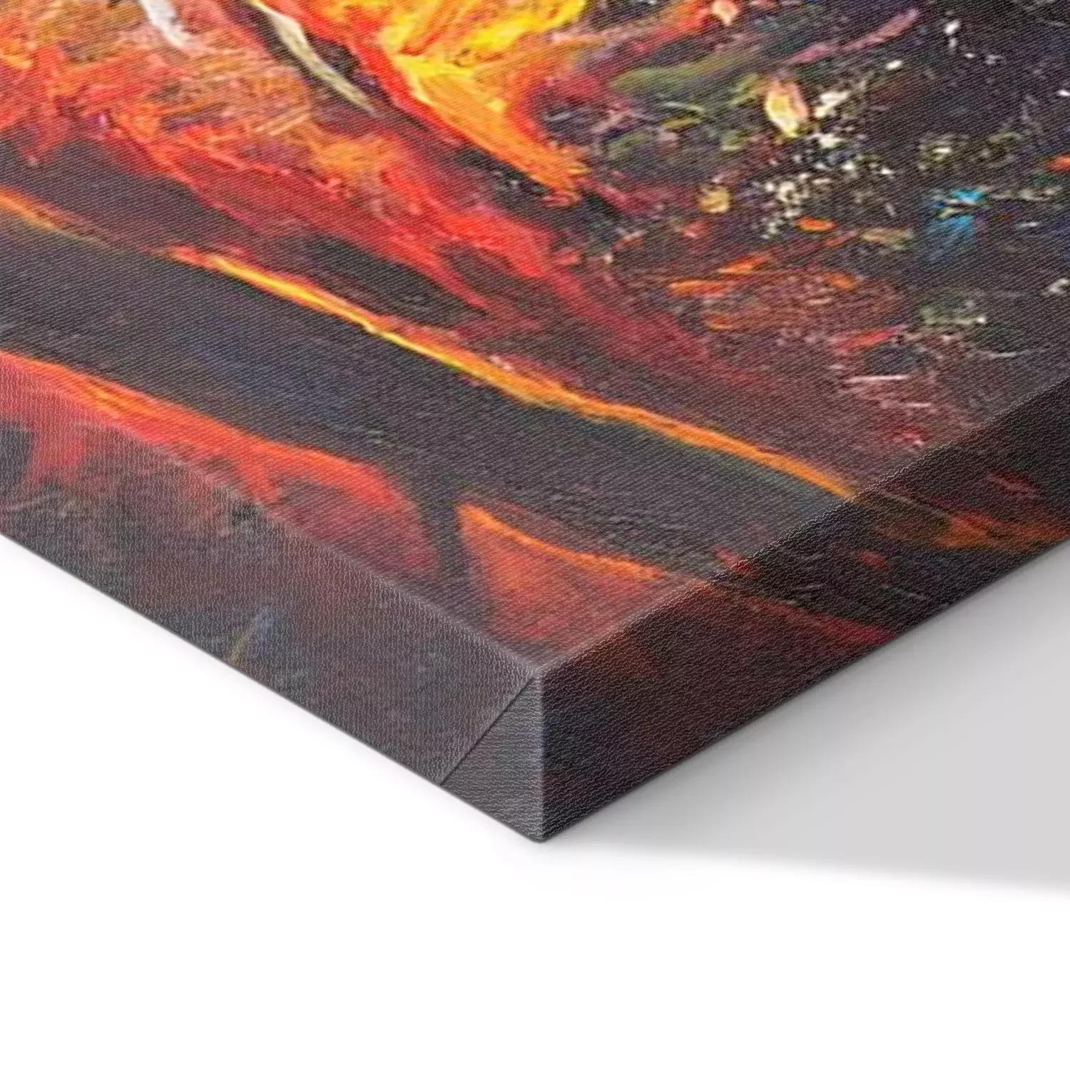De print wordt aangebracht op hoogwaardig canvas dat op een schildersweefgetouw (spieraam) wordt gespannen. Omdat de print de zijranden bedekt, hoeft het ontwerp niet met een extra kader te worden omlijst. Wij raden ook composities aan die uit meerdere foto's bestaan en zo een coherente compositie vormen.
