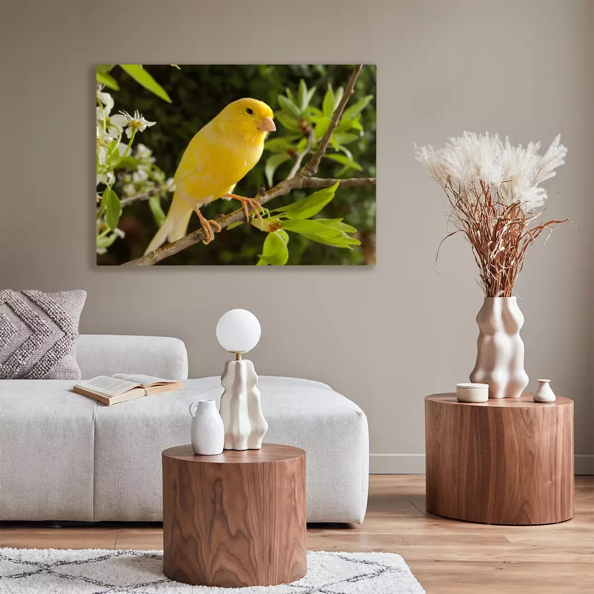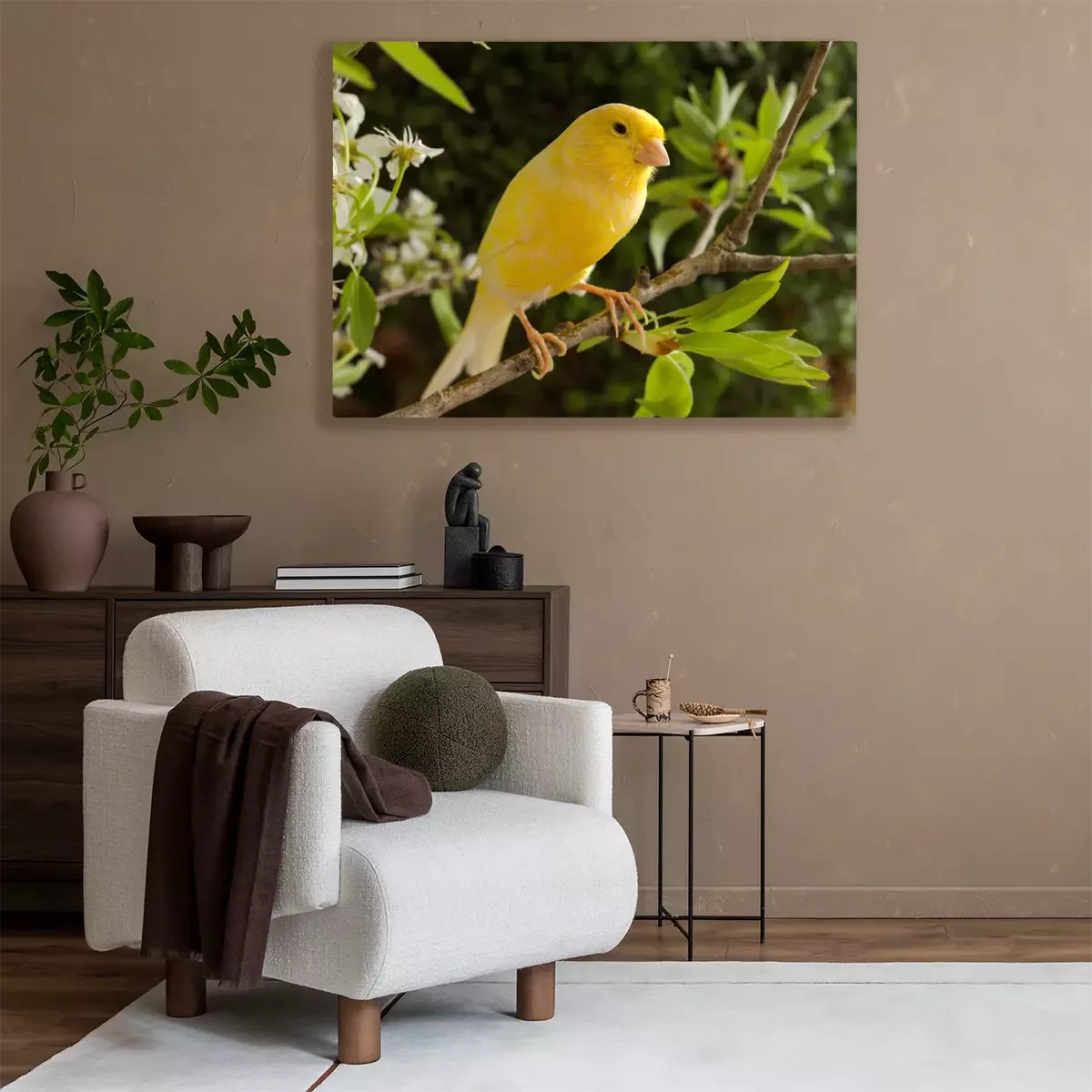 Canvas Kanarie en bloemen