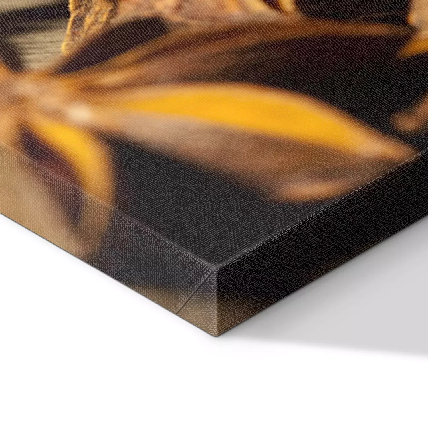De print wordt aangebracht op hoogwaardig canvas dat op een schildersweefgetouw (spieraam) wordt gespannen. Omdat de print de zijranden bedekt, hoeft het ontwerp niet met een extra kader te worden omlijst. Wij raden ook composities aan die uit meerdere foto's bestaan en zo een coherente compositie vormen.