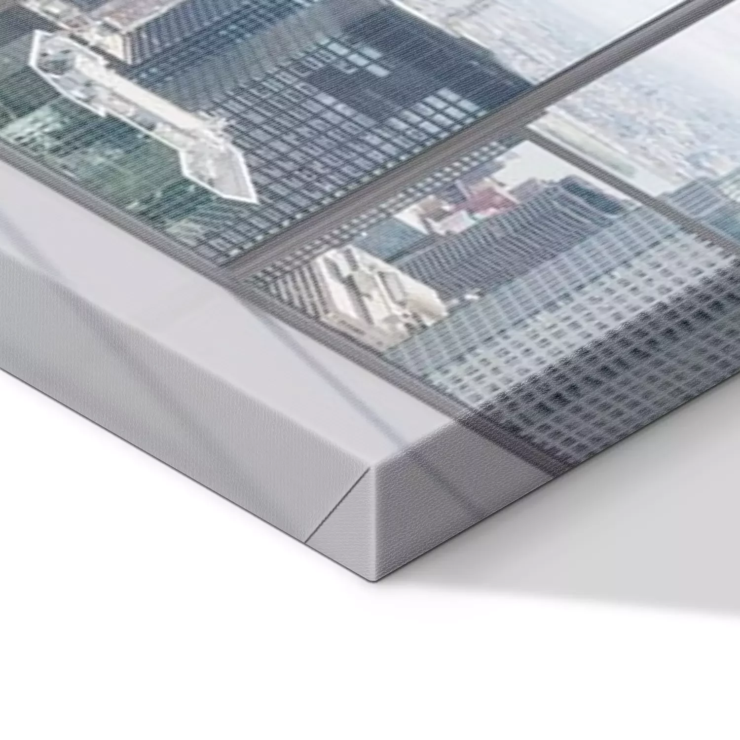 De print wordt aangebracht op hoogwaardig canvas dat op een schildersweefgetouw (spieraam) wordt gespannen. Omdat de print de zijranden bedekt, hoeft het ontwerp niet met een extra kader te worden omlijst. Wij raden ook composities aan die uit meerdere foto's bestaan en zo een coherente compositie vormen.
