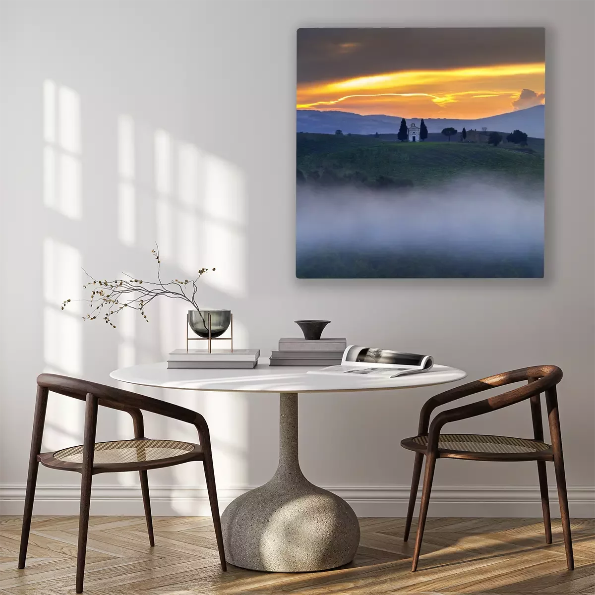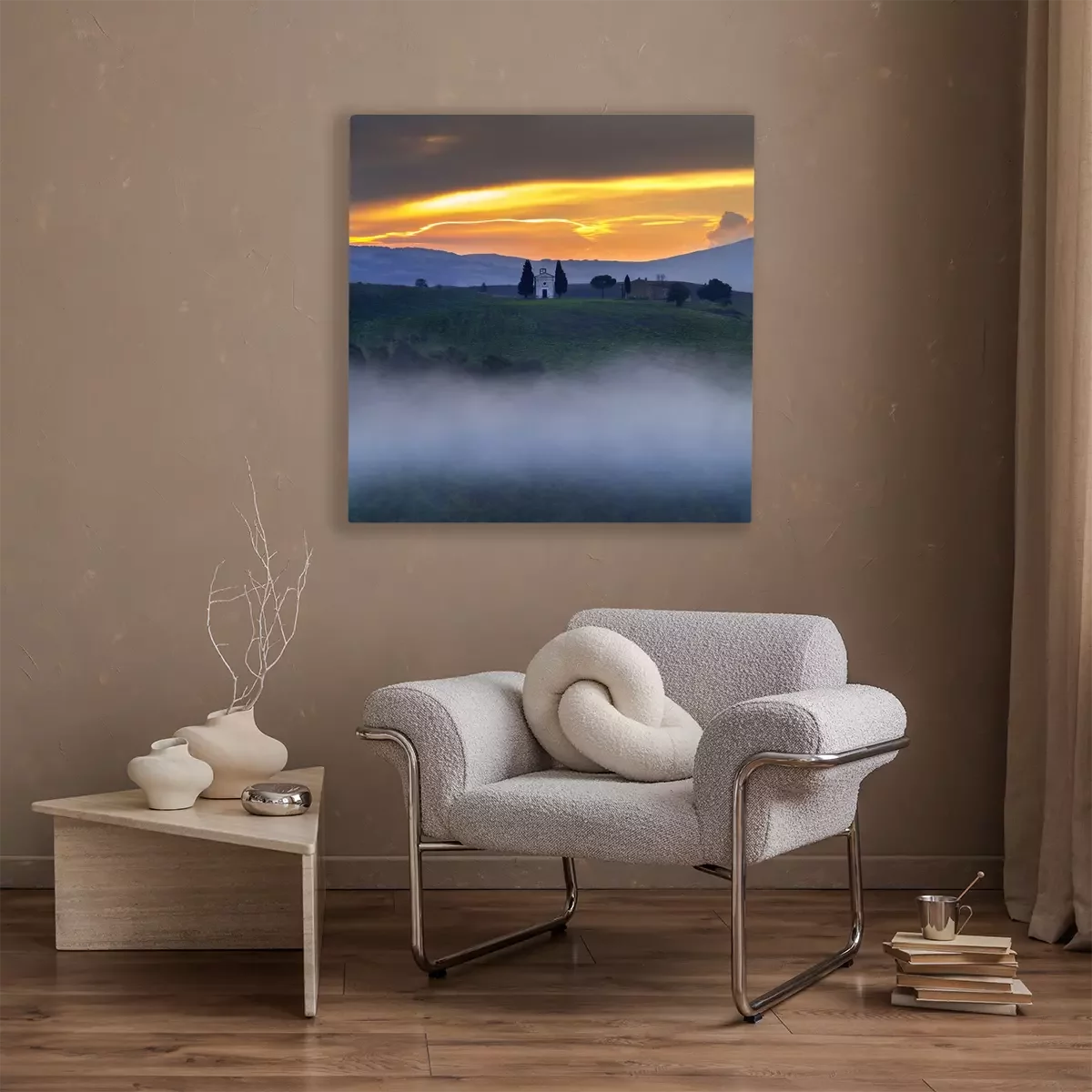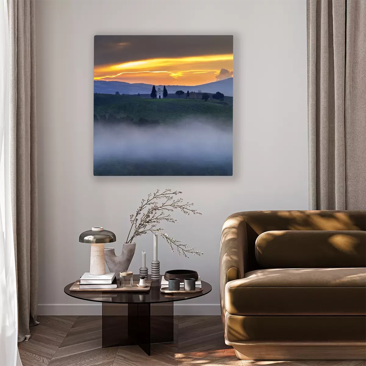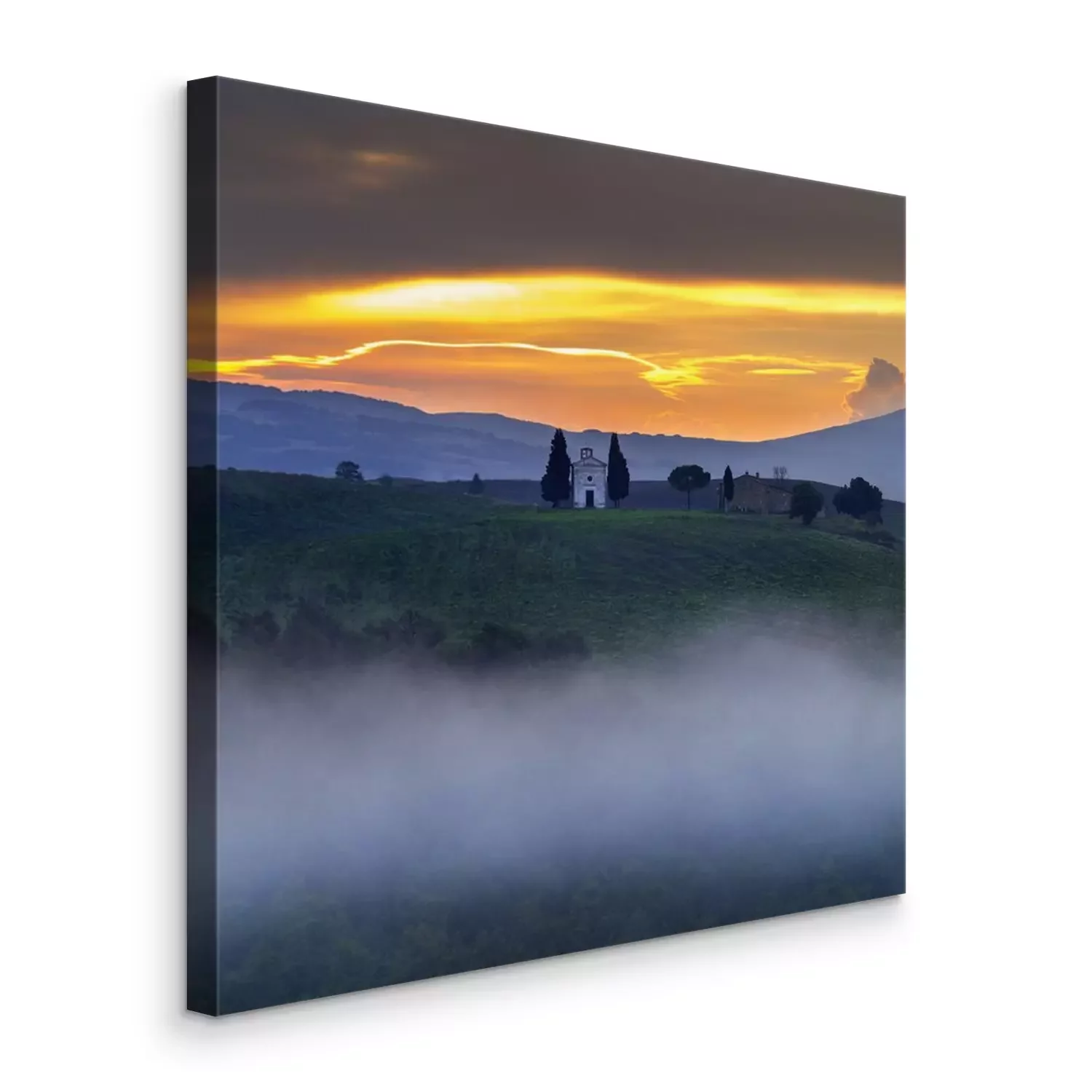 Canvas: kapel La Valetta in de ochtend schemering in Toscane