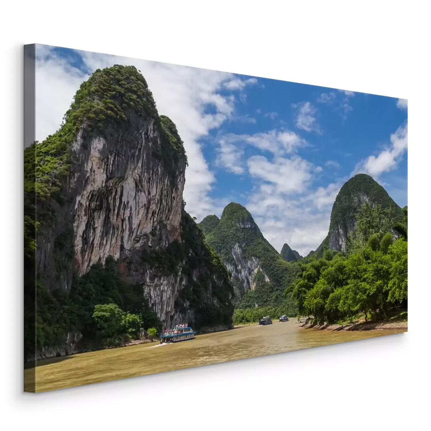 Canvas Karst bergen en kalksteen toppen van de Li-rivier in China