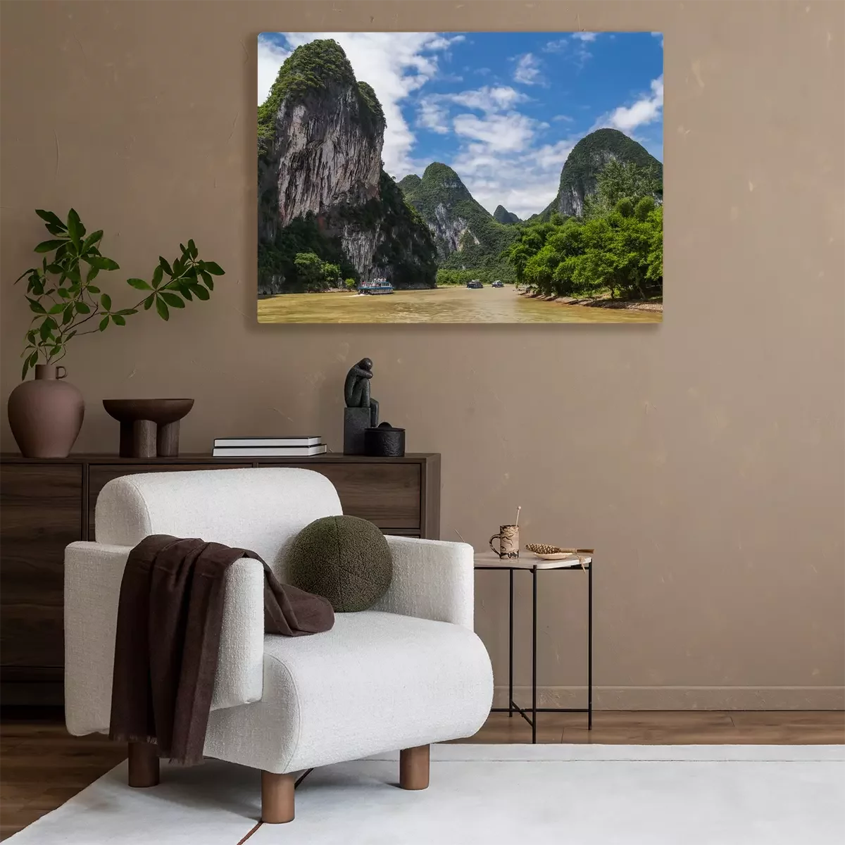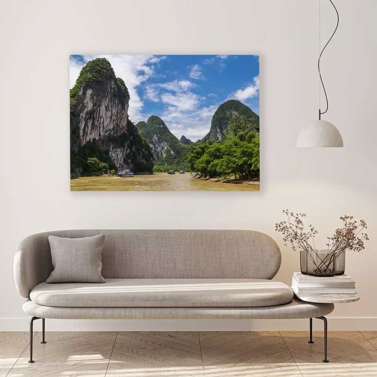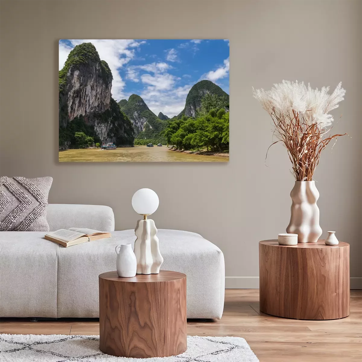 Canvas: Karst bergen en kalksteen toppen van de Li-rivier in China