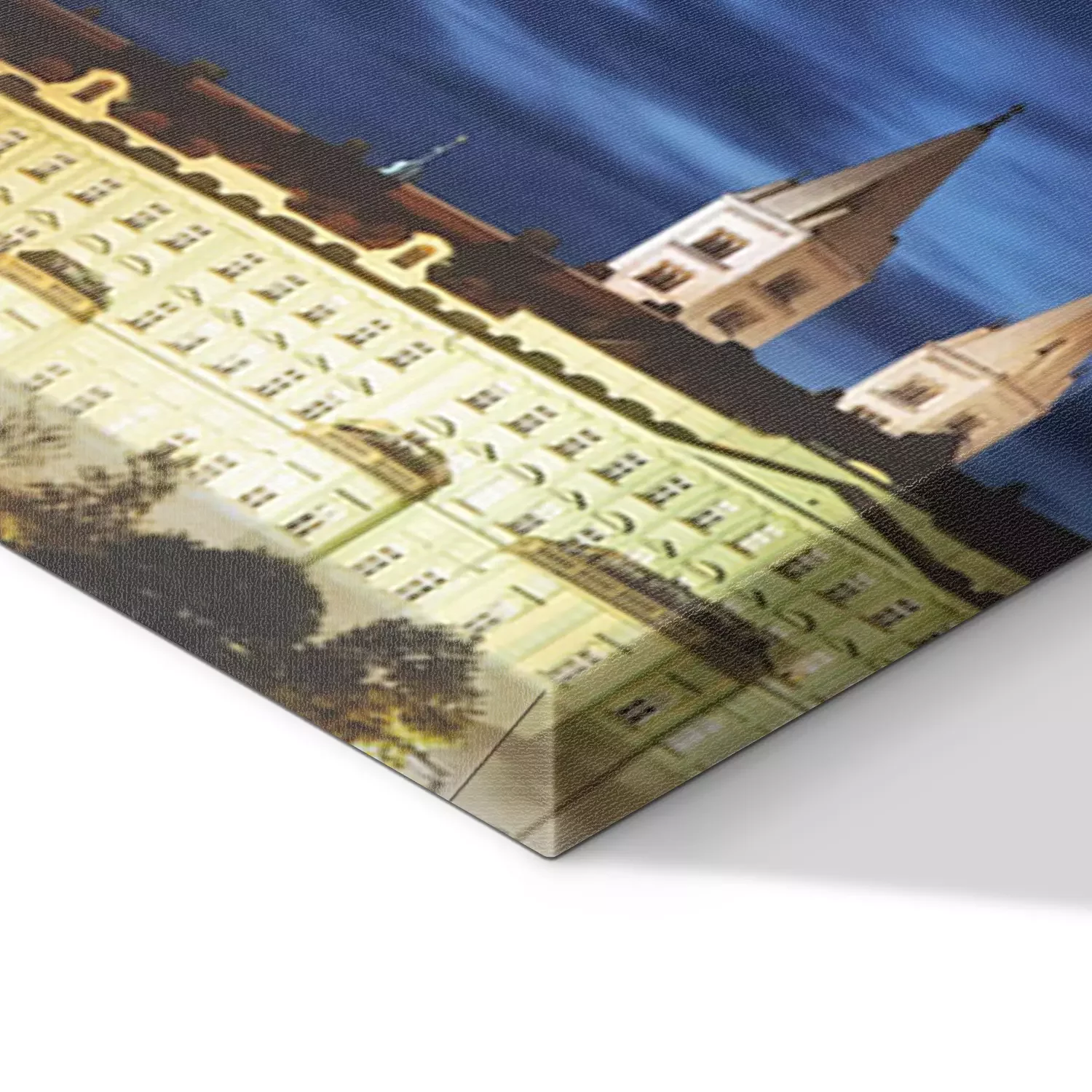De print wordt aangebracht op hoogwaardig canvas dat op een schildersweefgetouw (spieraam) wordt gespannen. Omdat de print de zijranden bedekt, hoeft het ontwerp niet met een extra kader te worden omlijst. Wij raden ook composities aan die uit meerdere foto's bestaan en zo een coherente compositie vormen.