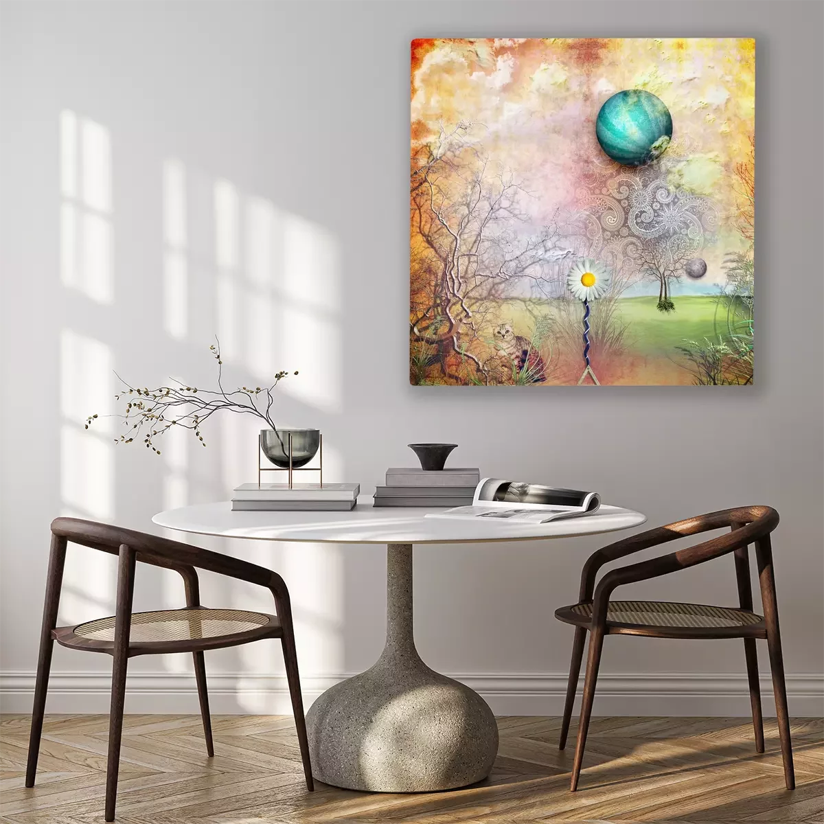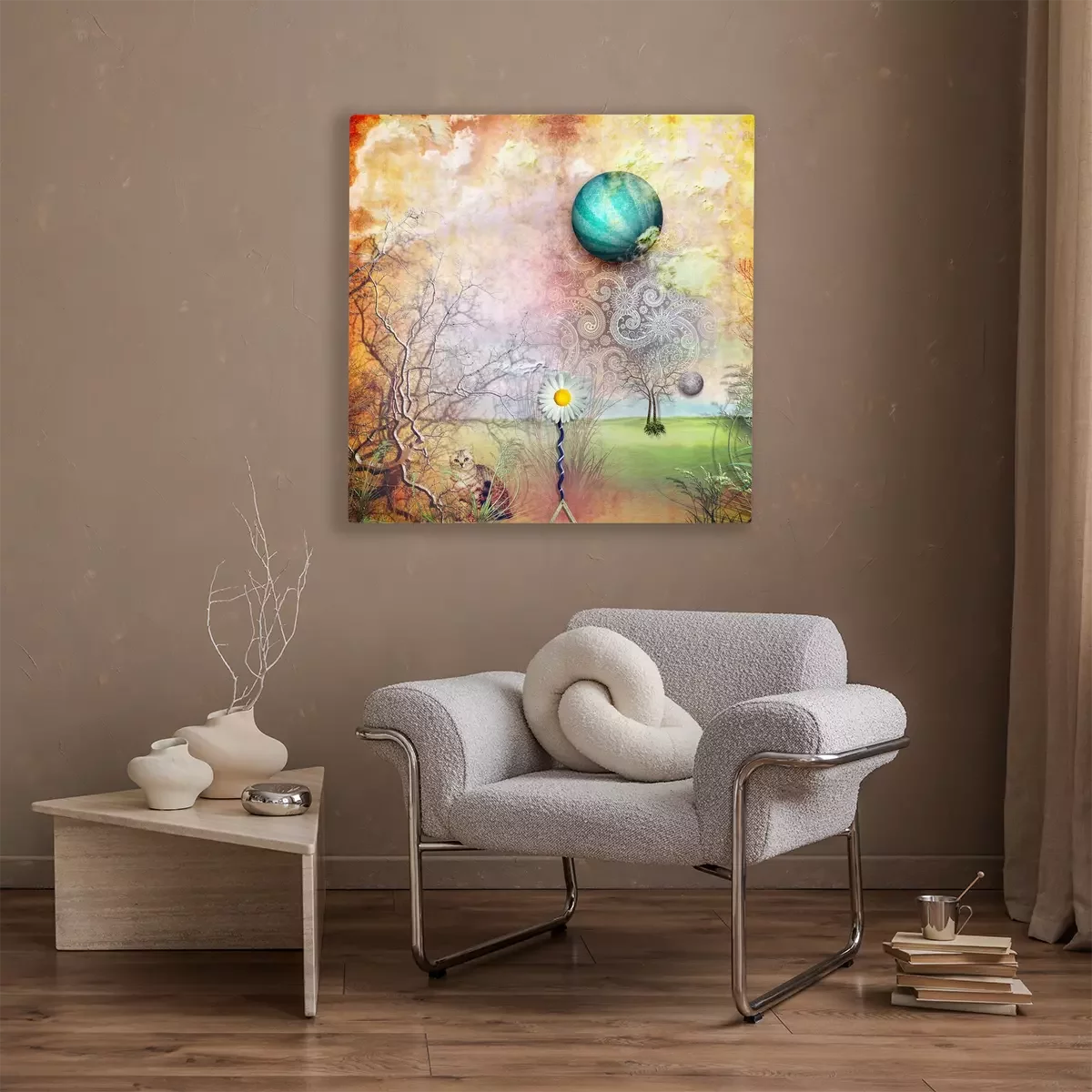 De print wordt aangebracht op hoogwaardig canvas dat op een schildersweefgetouw (spieraam) wordt gespannen. Omdat de print de zijranden bedekt, hoeft het ontwerp niet met een extra kader te worden omlijst. Wij raden ook composities aan die uit meerdere foto's bestaan en zo een coherente compositie vormen.
