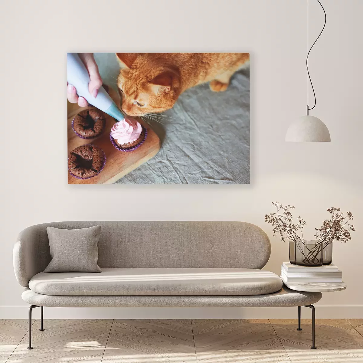 De print wordt aangebracht op hoogwaardig canvas dat op een schildersweefgetouw (spieraam) wordt gespannen. Omdat de print de zijranden bedekt, hoeft het ontwerp niet met een extra kader te worden omlijst. Wij raden ook composities aan die uit meerdere foto's bestaan en zo een coherente compositie vormen.