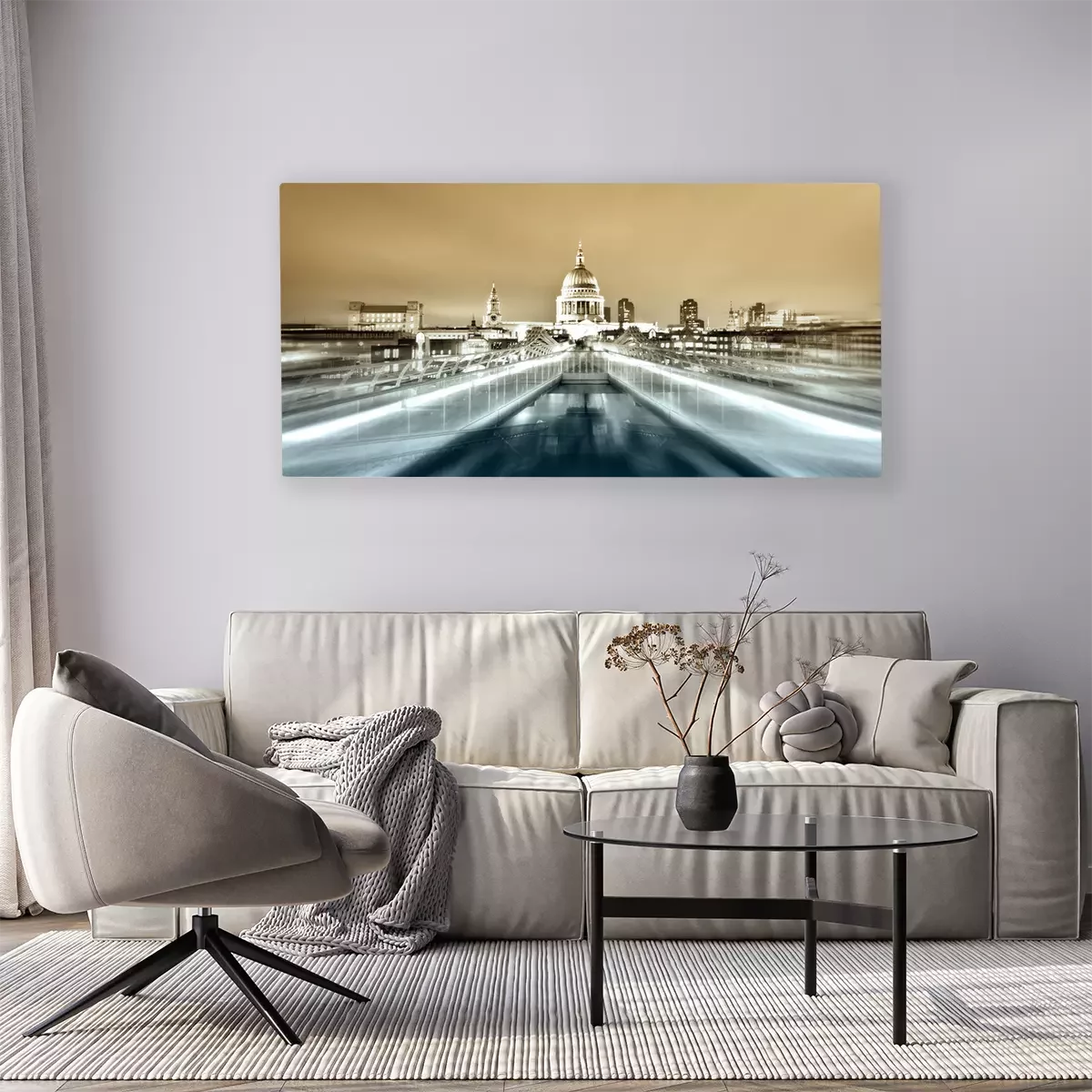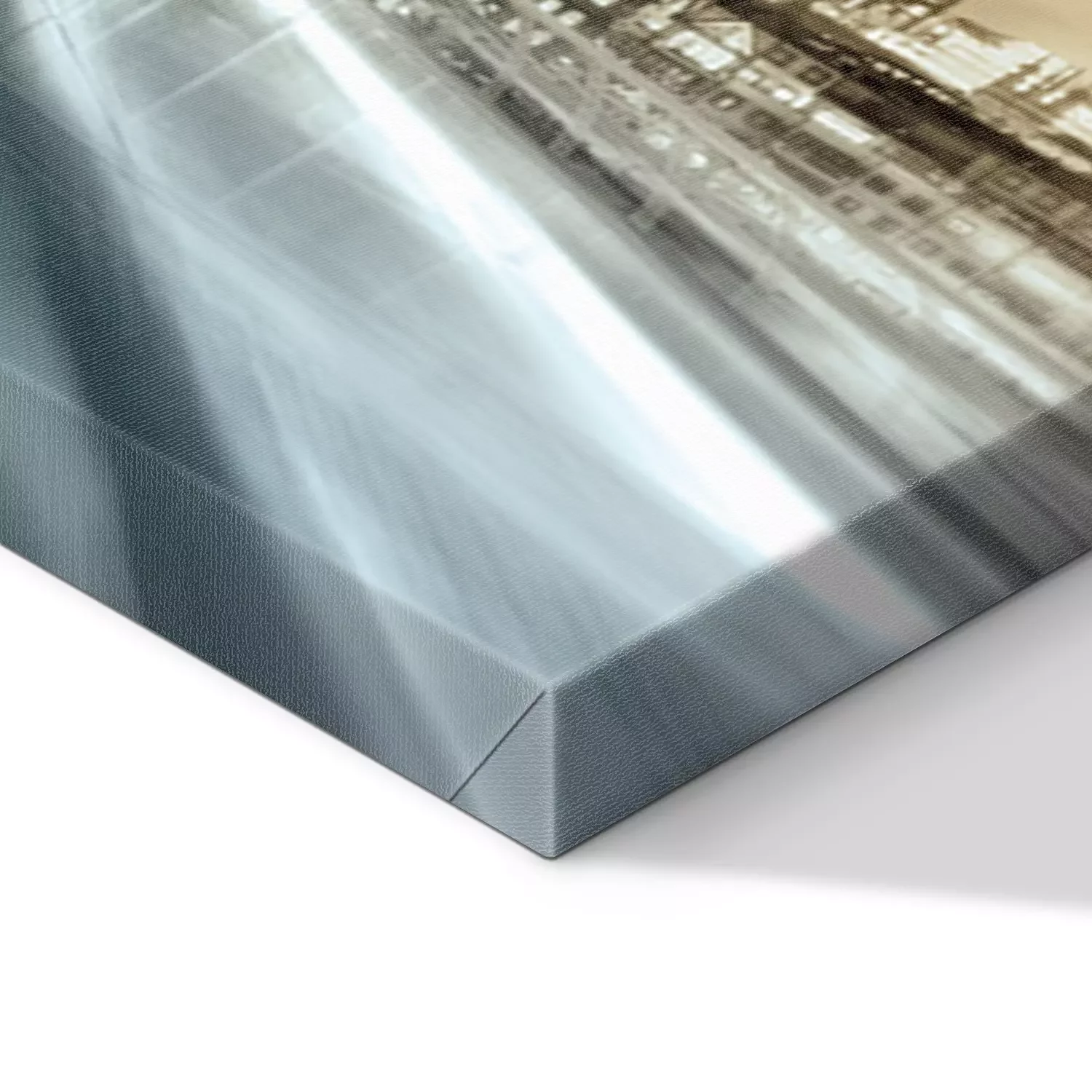 De print wordt aangebracht op hoogwaardig canvas dat op een schildersweefgetouw (spieraam) wordt gespannen. Omdat de print de zijranden bedekt, hoeft het ontwerp niet met een extra kader te worden omlijst. Wij raden ook composities aan die uit meerdere foto's bestaan en zo een coherente compositie vormen.